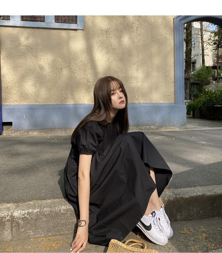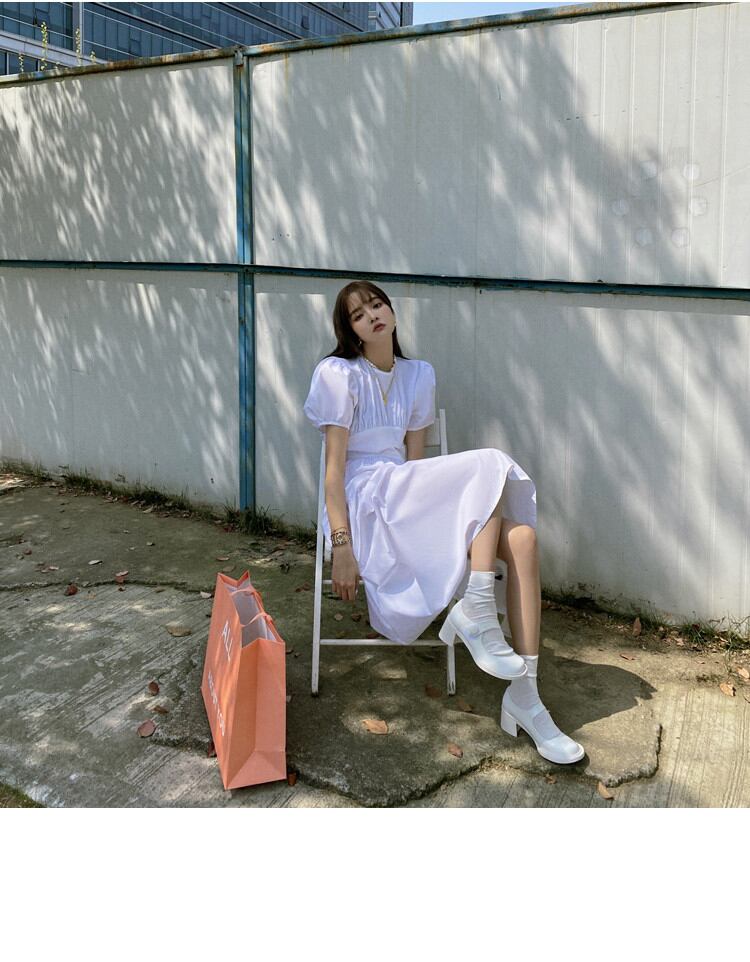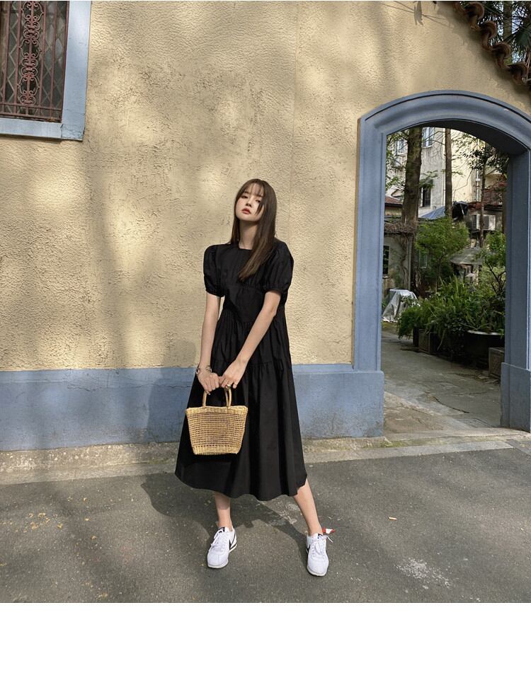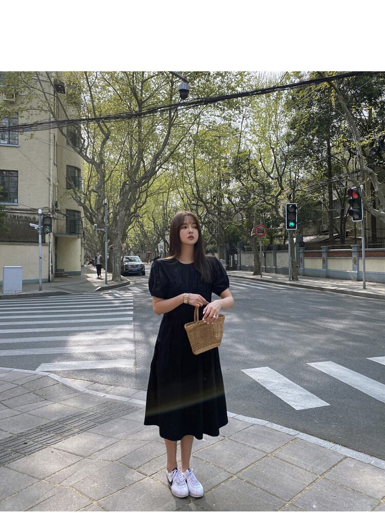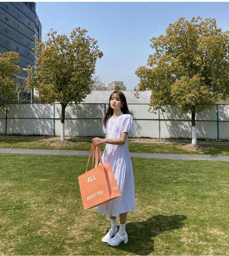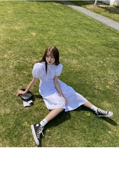 プリンセススタイル パフスリーブ ウエスト ワンピース 半袖 バンディング