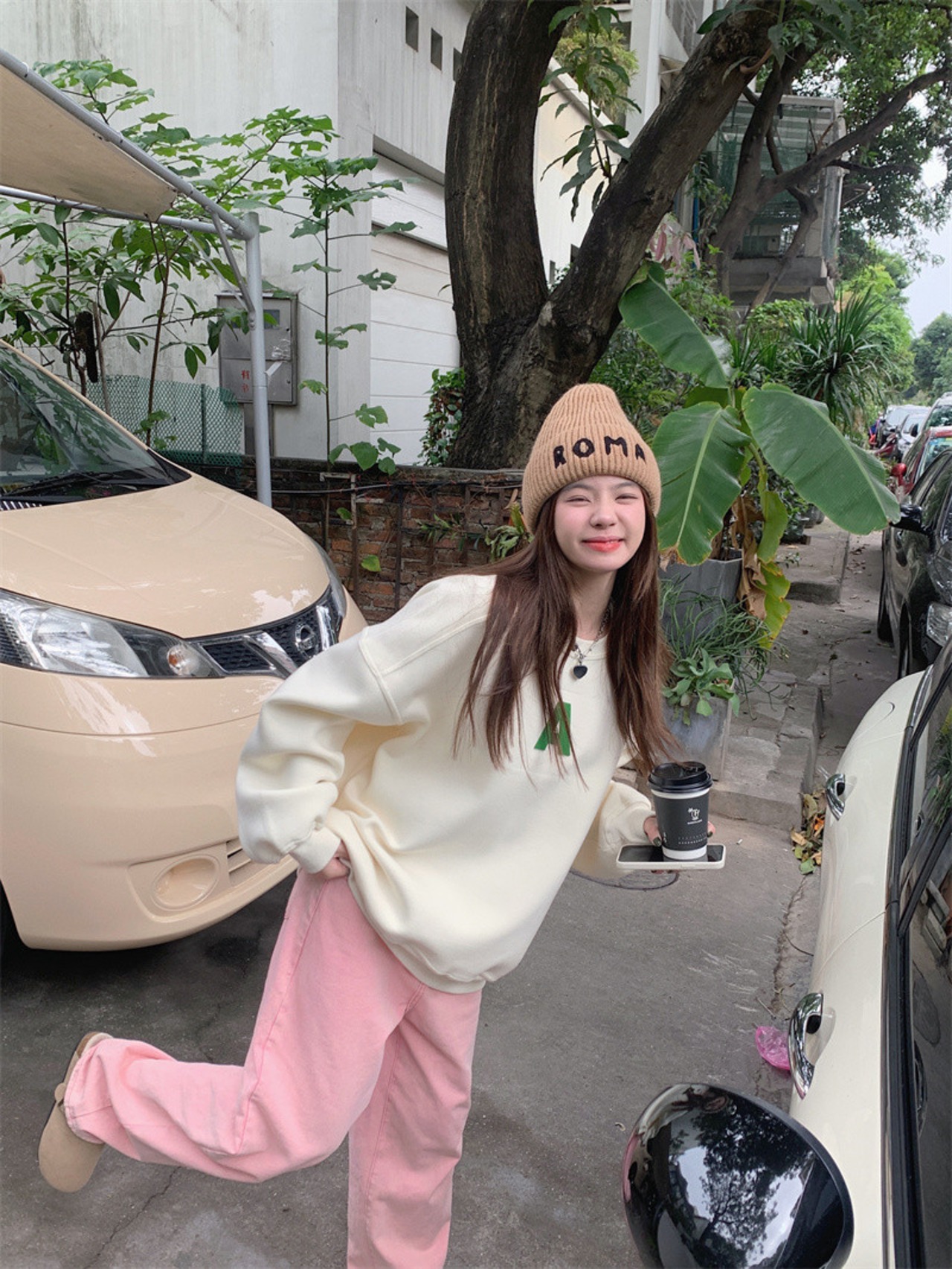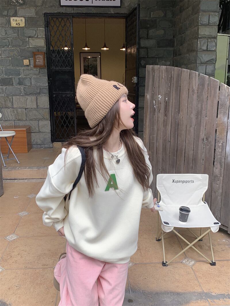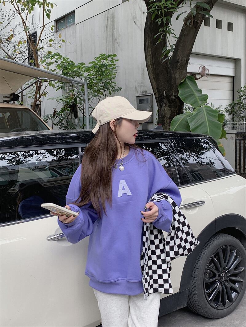 秋新作 ゆったり 長袖 プリント アルファベット 裏起毛 プルオーバー デコレーション トレーナー★# VVi2705