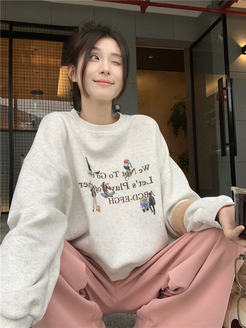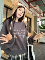 秋冬 新作 レトロ 設計感 ゆったり 長袖 韓国風 裏起毛 トレーナー★# VVi2716