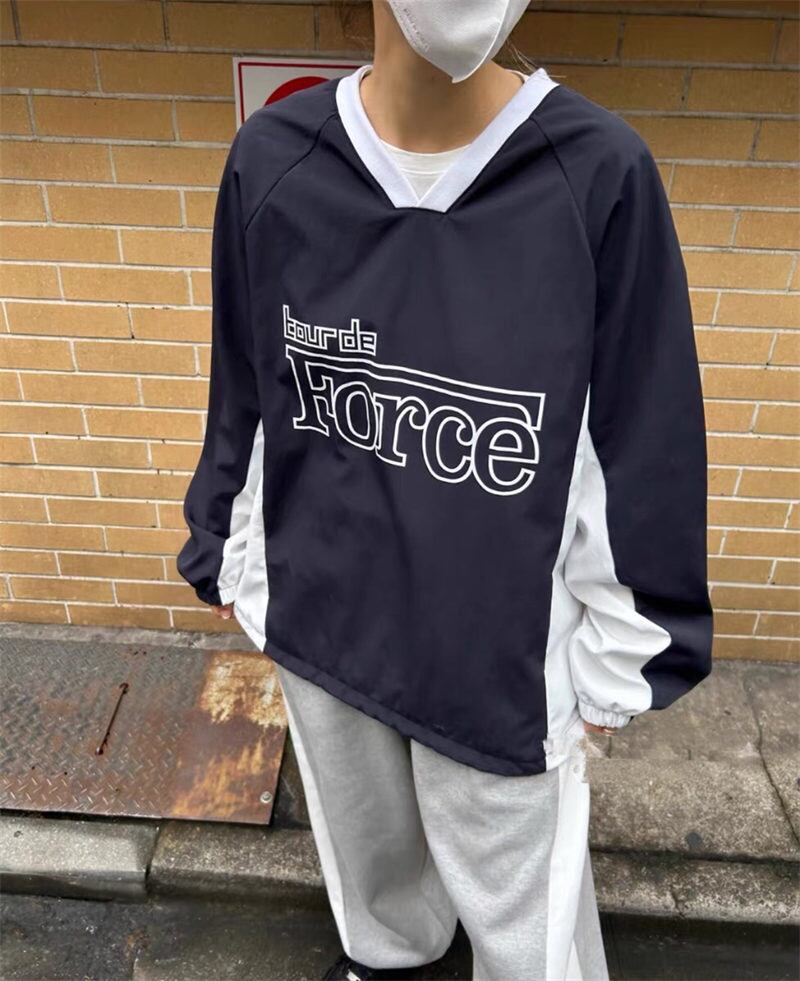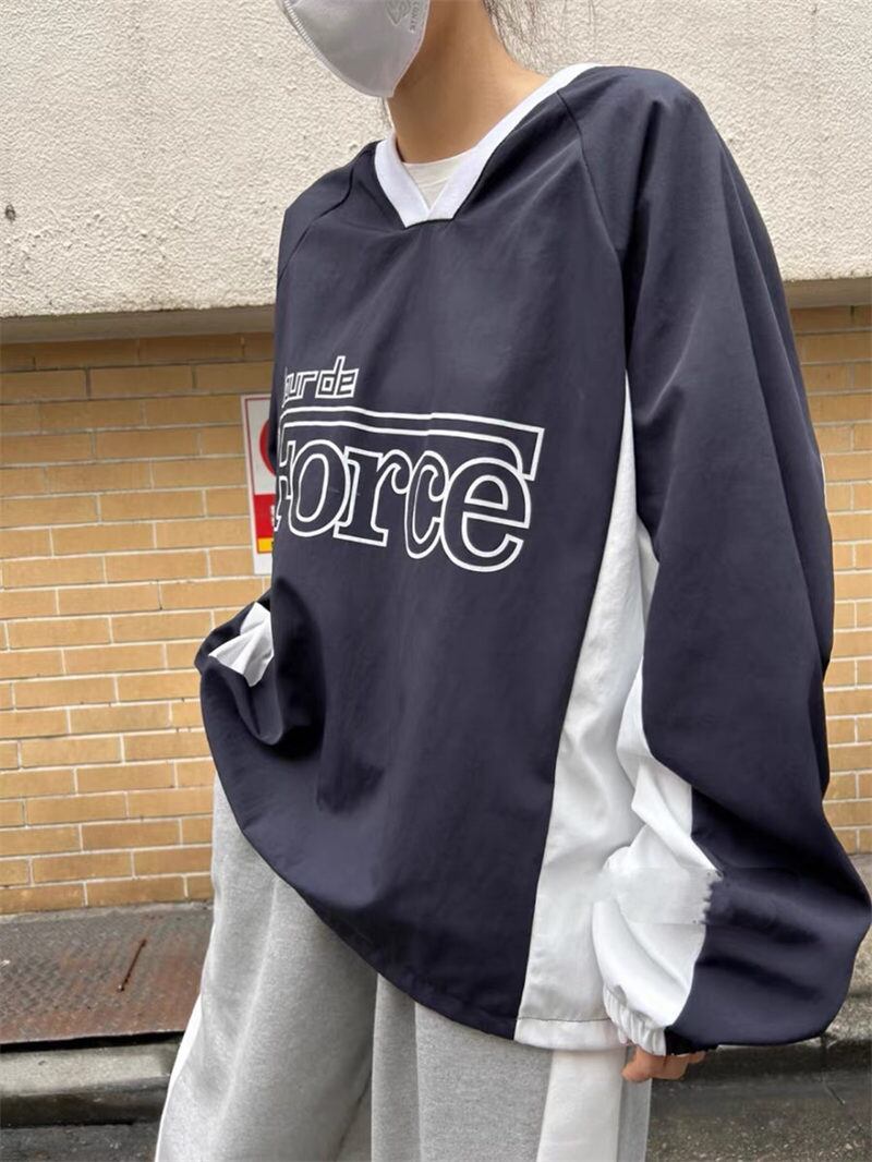 冬新作 レトロ レイジー風 合わせやすい Vネック 配色 運動風 長袖 トレーナー★# VVi2787