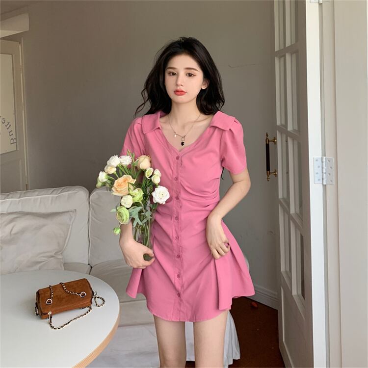 夏 新作 ワンピース 気質 受け取って腰 ミニスカート 半袖