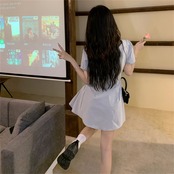 夏 新作 ワンピース 気質 受け取って腰 ミニスカート 半袖