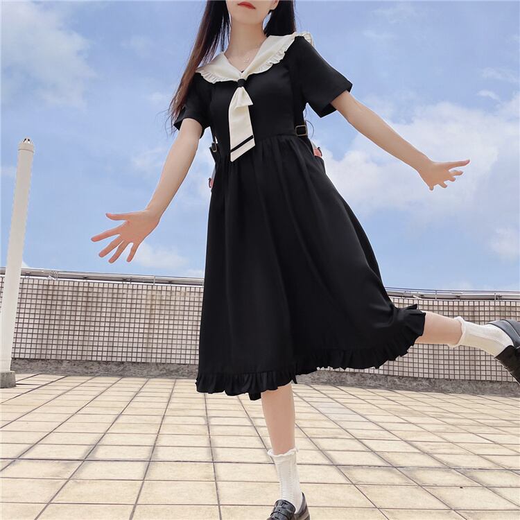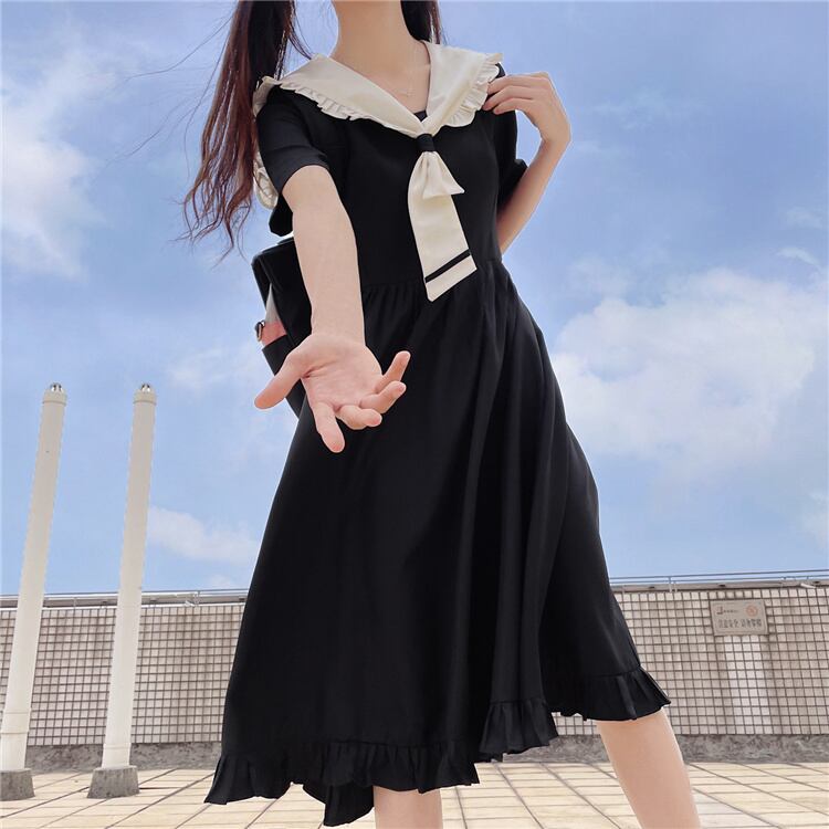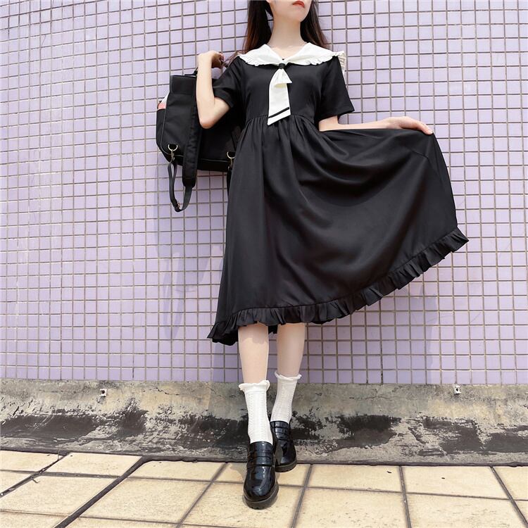 INSスタイル ネクタイ ワンピース スリム 可愛い 縫付 ロングスカート 半袖
