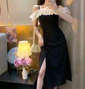 春夏新作 女 レディース ハイウエスト 半袖 ロング ワンピース タイトスカート 7色 S-L★# GYKDQQ639880