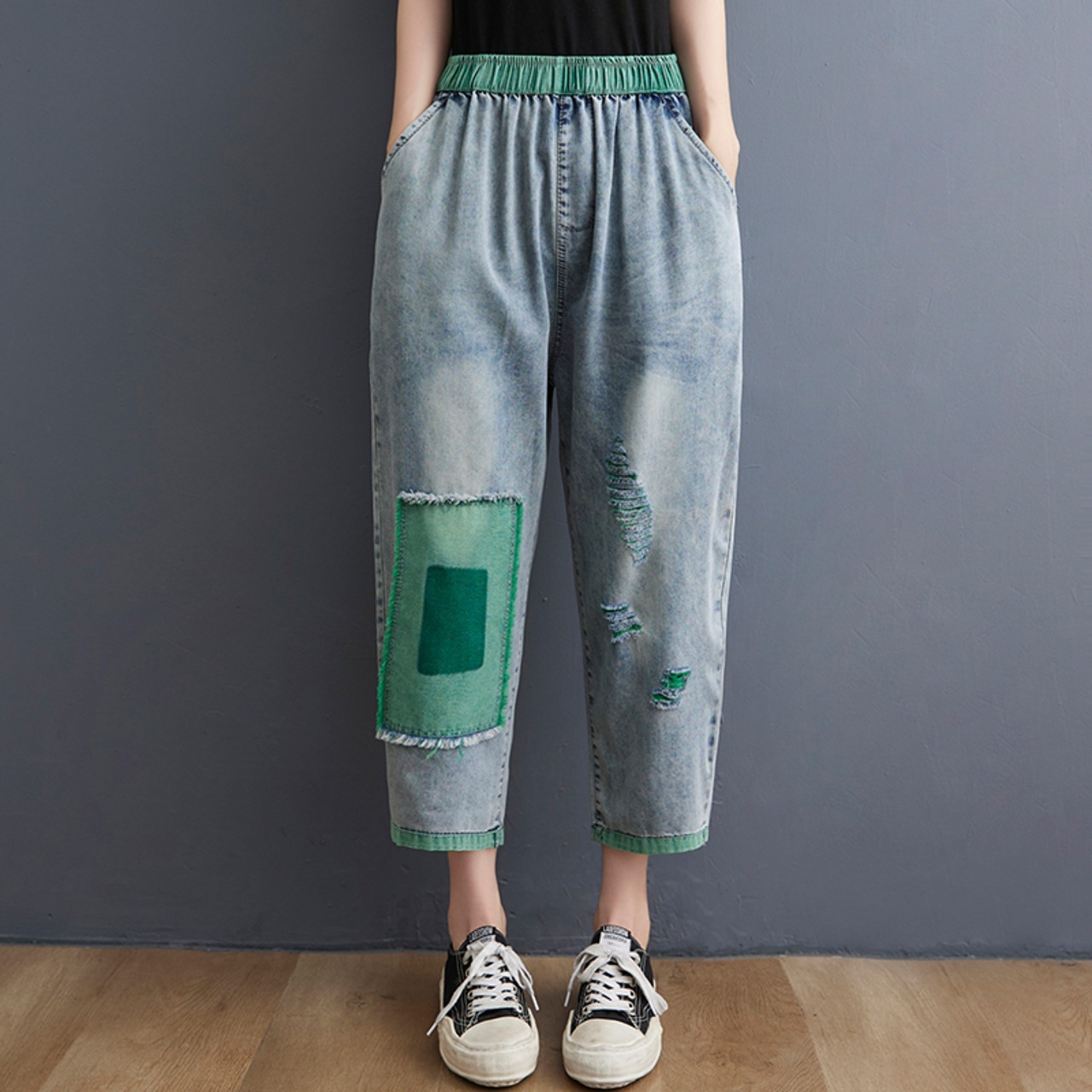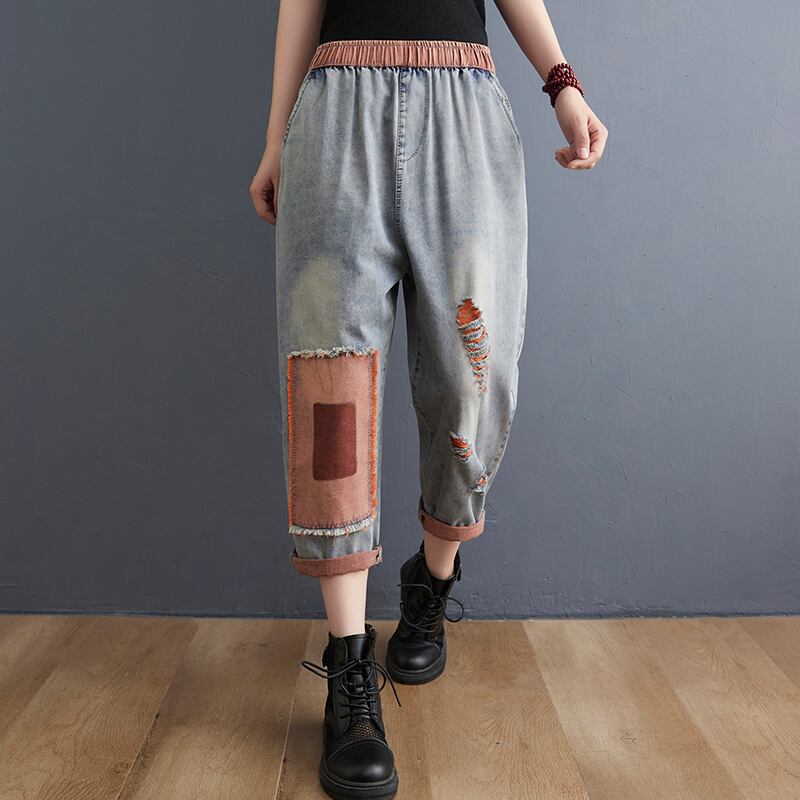 初回送料無料カジュアルパッチデニム破れ夏レディースファションズボンパンツ
