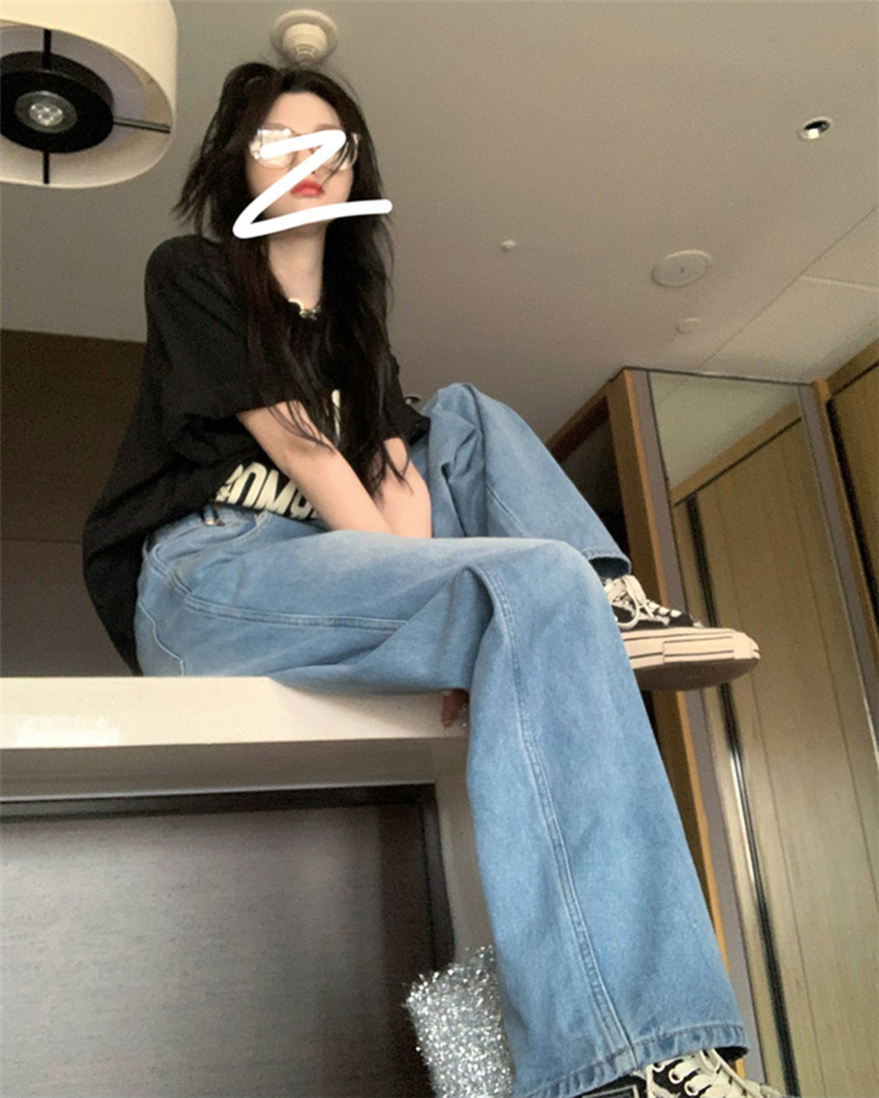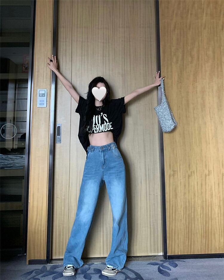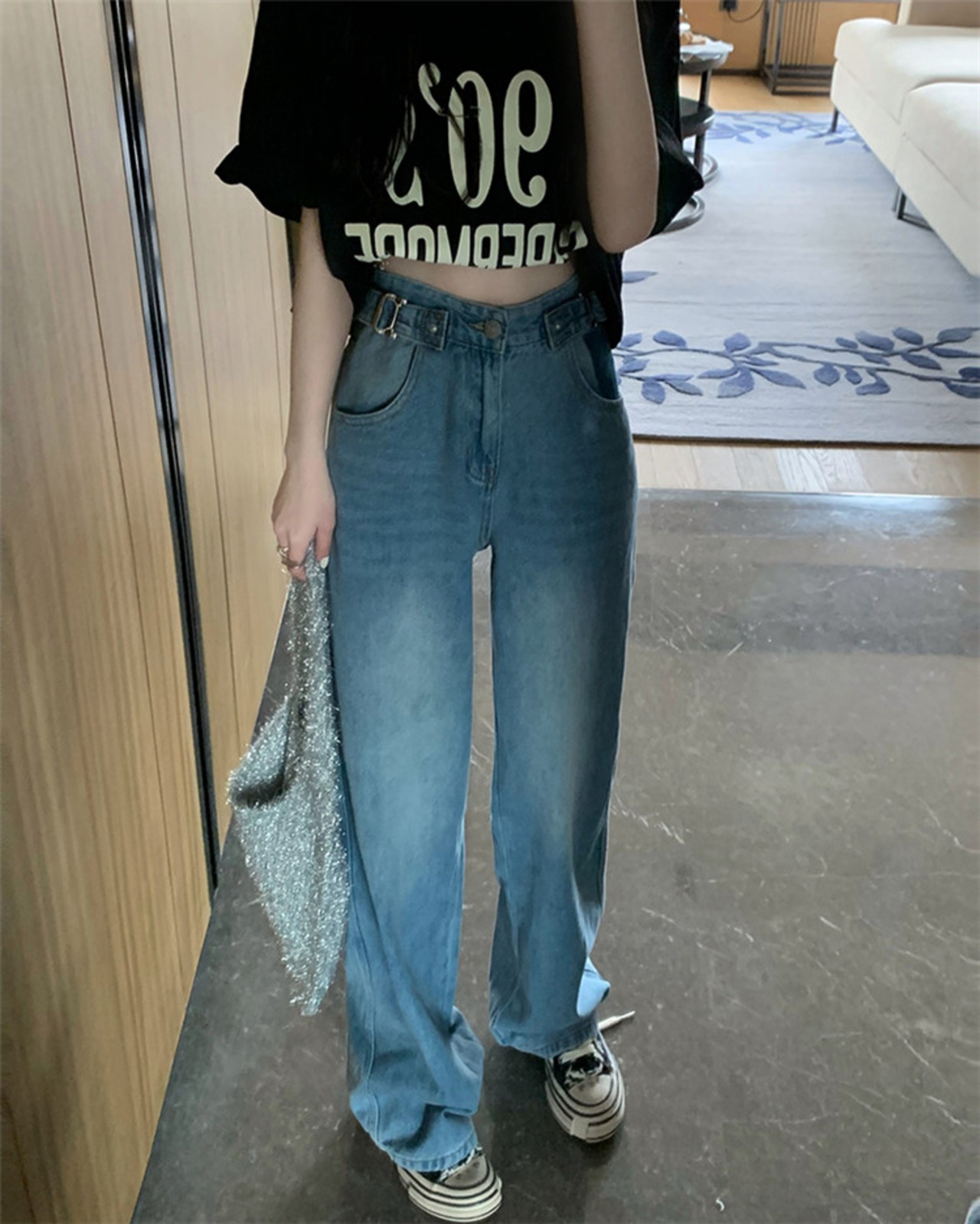 早い者勝ち スリム ワイドレッグ アジャスタブル ハイウエスト ジーンズ 女性 ゆったりする
