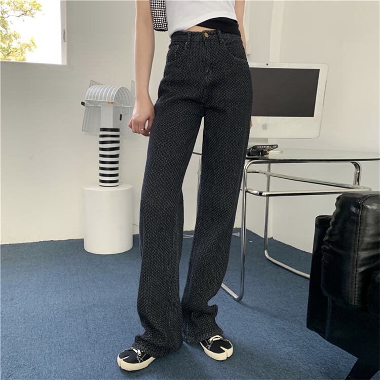 早い者勝ち ハイウエスト ワイドパンツ カジュアル ジーンズ ストレートレッグ