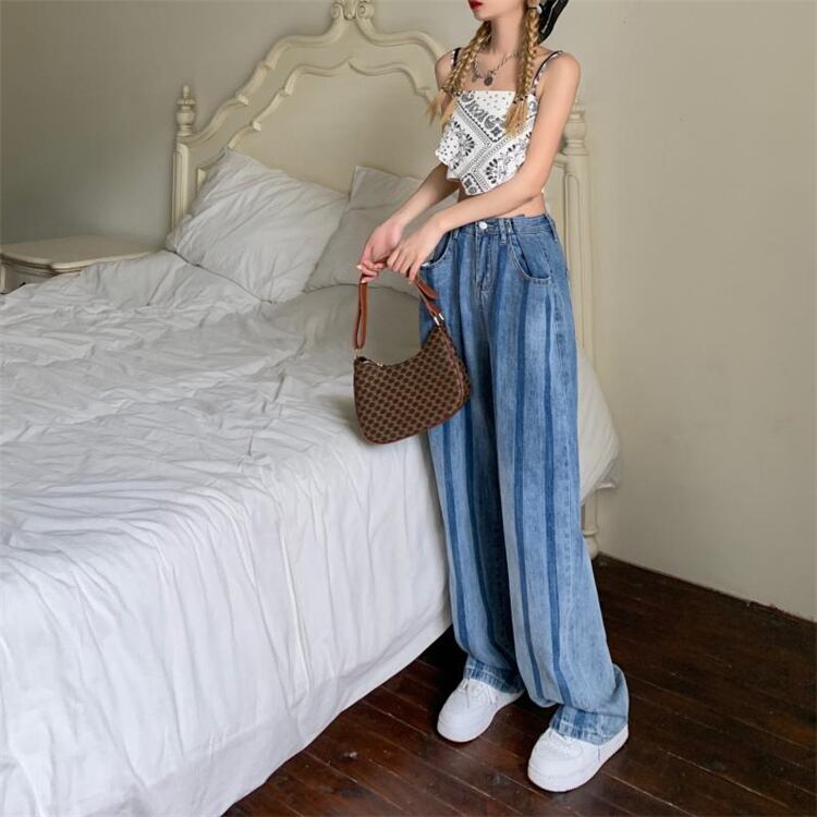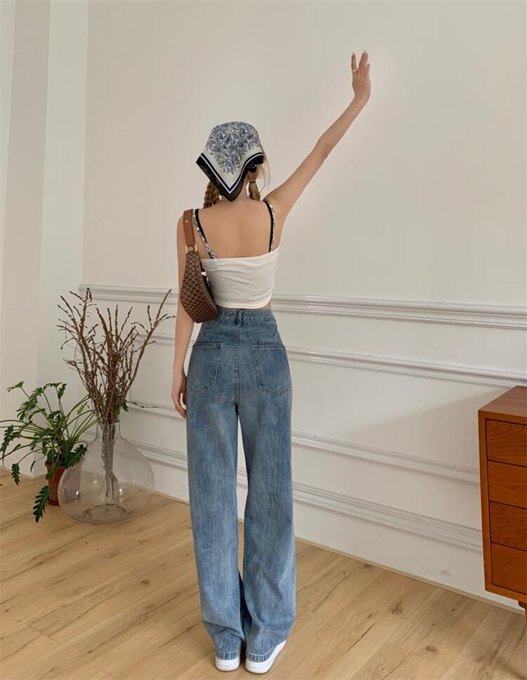 早い者勝ち ロングパンツ ジーンズ ハイウエスト スリム ストレートレッグ