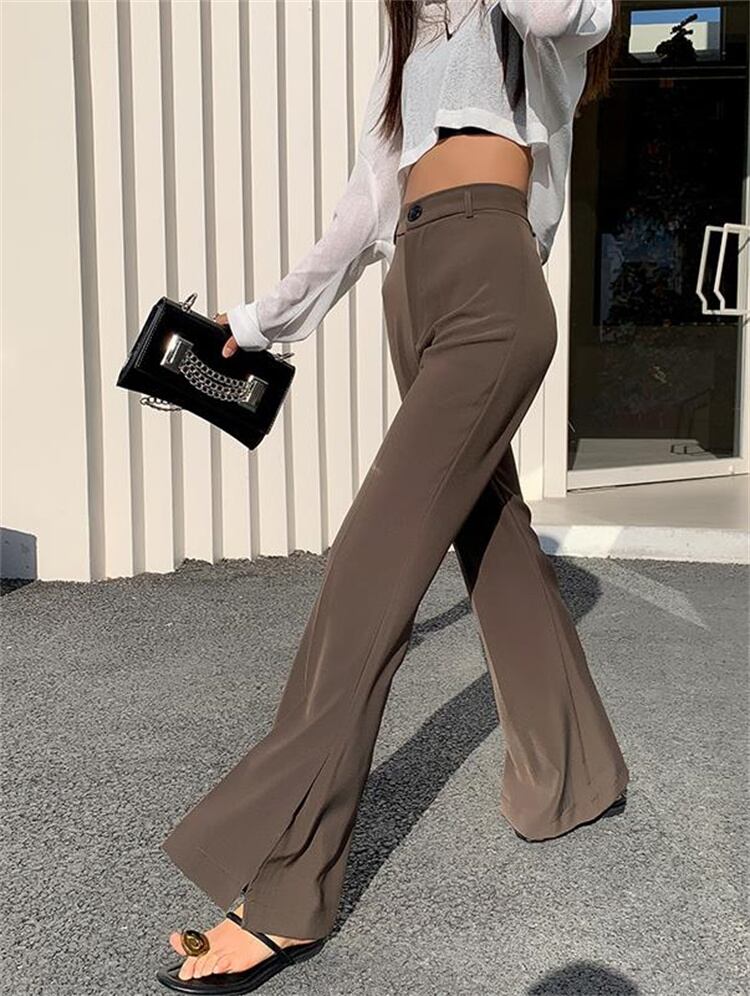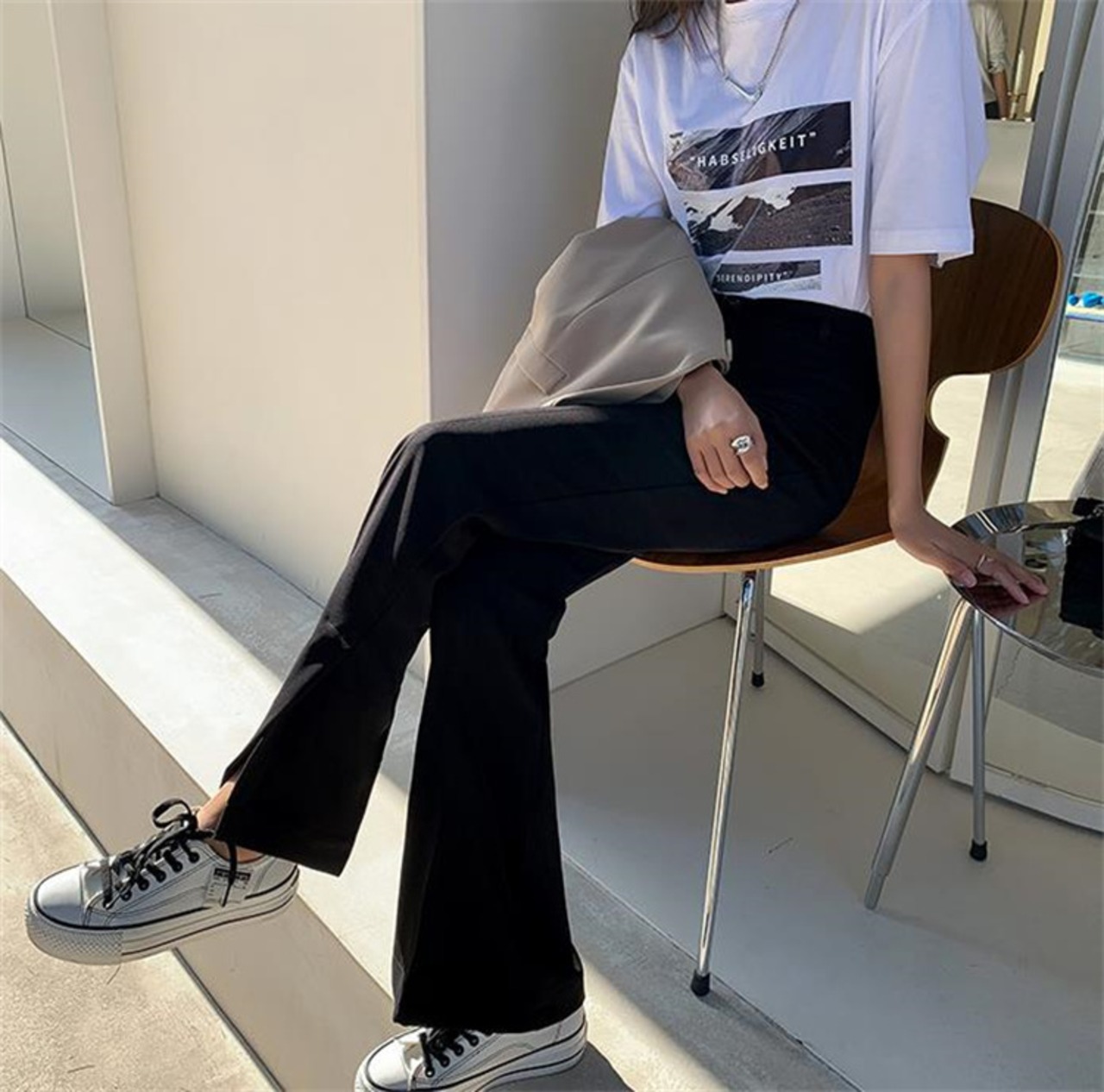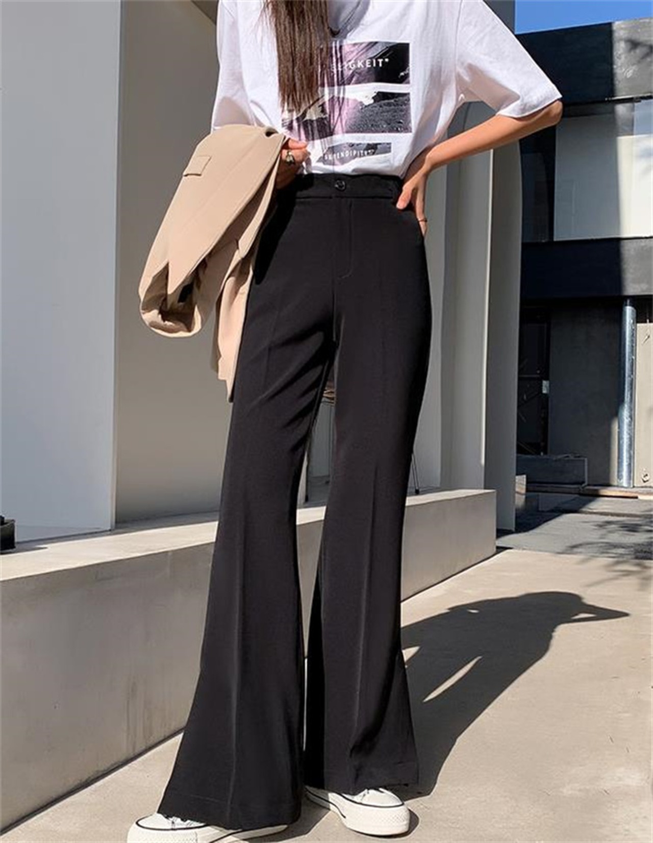 早い者勝ち スプリット マイクロフレア ワイドパンツ スーツパンツ ドレープ