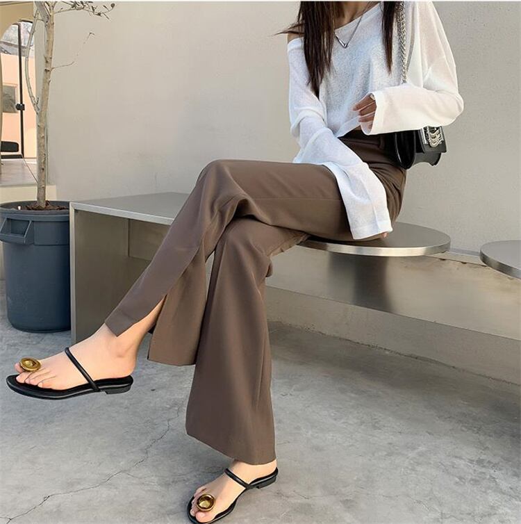 スプリット マイクロフレア ワイドパンツ スーツパンツ ドレープ カジュアルパンツ