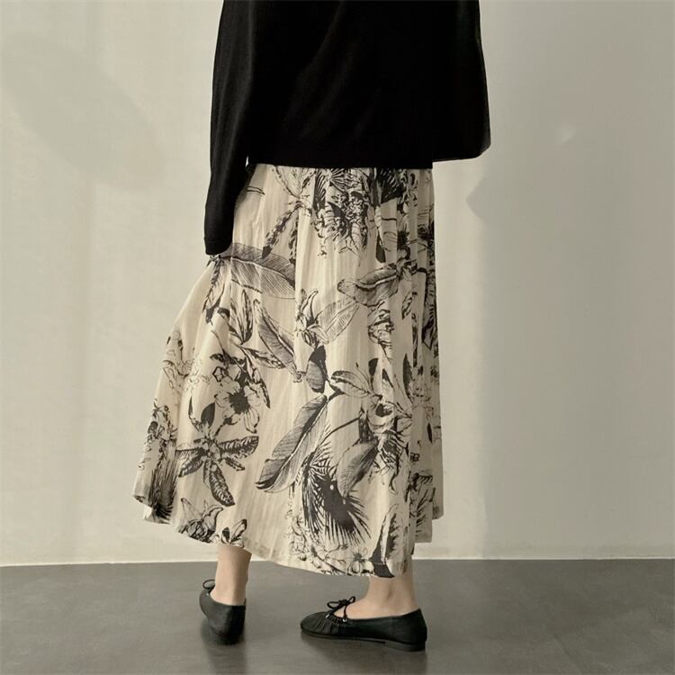 早い者勝ち aラインスカート 水墨風ハーフスカート スリム ロングスカート