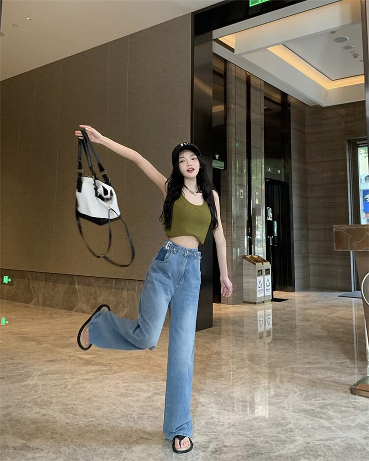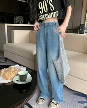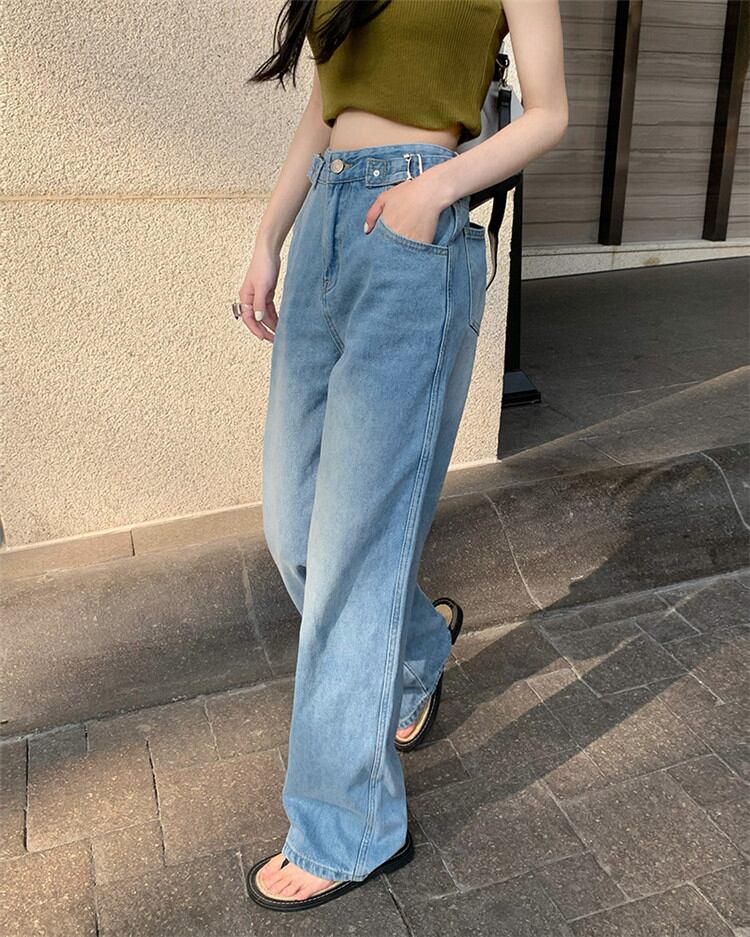 早い者勝ち スリム ワイドレッグ アジャスタブル ハイウエスト ジーンズ 女性 ゆったりする