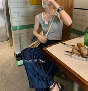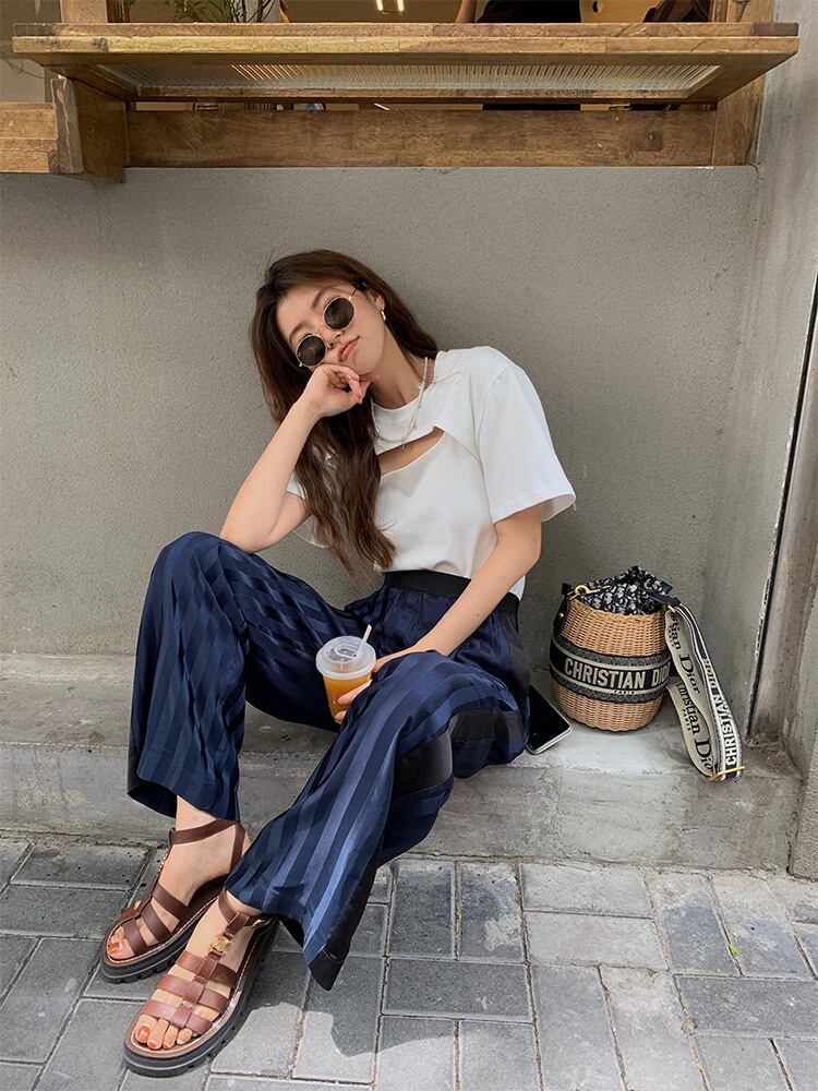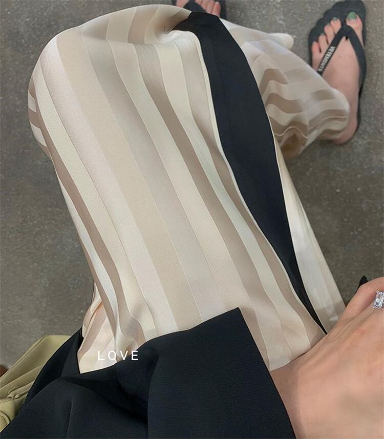 早い者勝ち シン ストライプ カジュアルパンツ アイスシルク シン