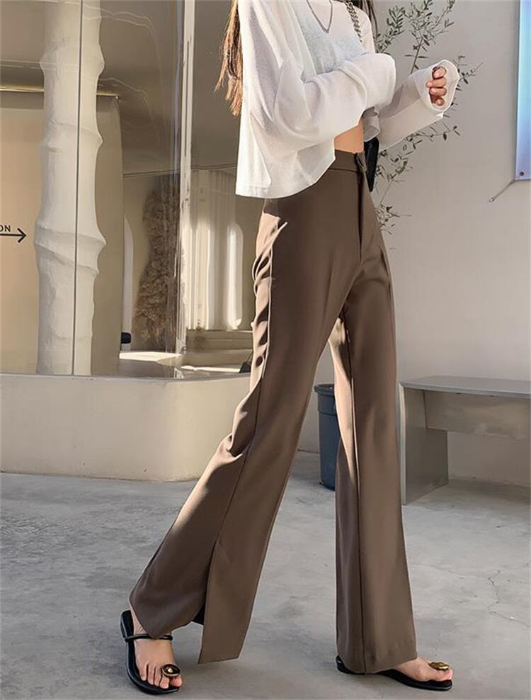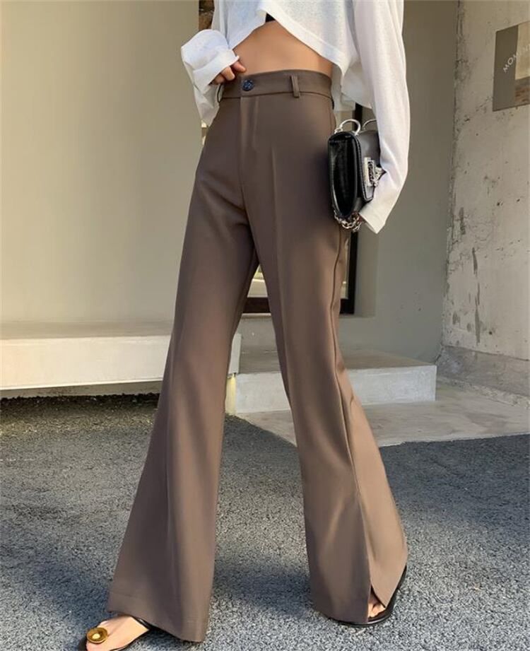 早い者勝ち スプリット マイクロフレア ワイドパンツ スーツパンツ ドレープ