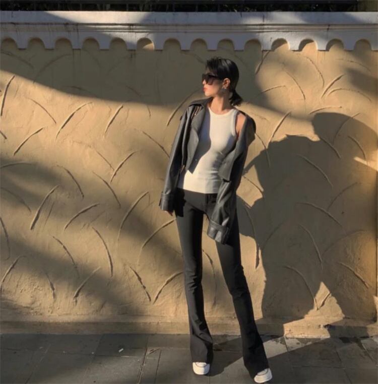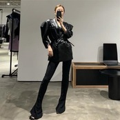 魅力を増すコツ ハイウエスト カジュアルパンツ スリムフィット フレアパンツ