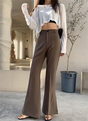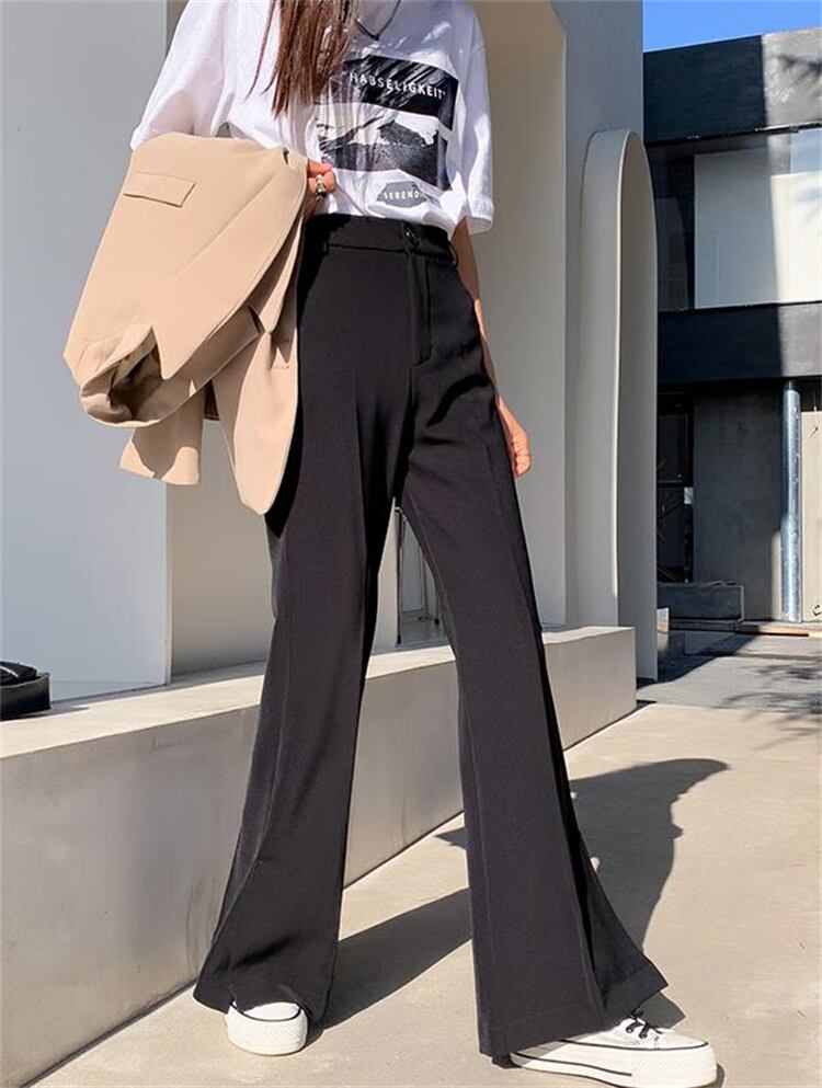 スプリット マイクロフレア ワイドパンツ スーツパンツ ドレープ カジュアルパンツ