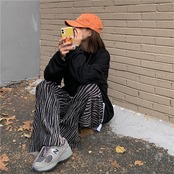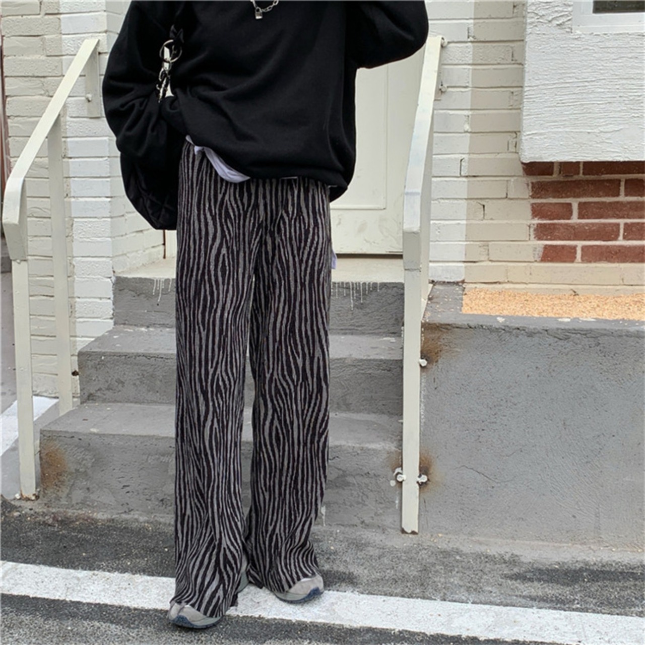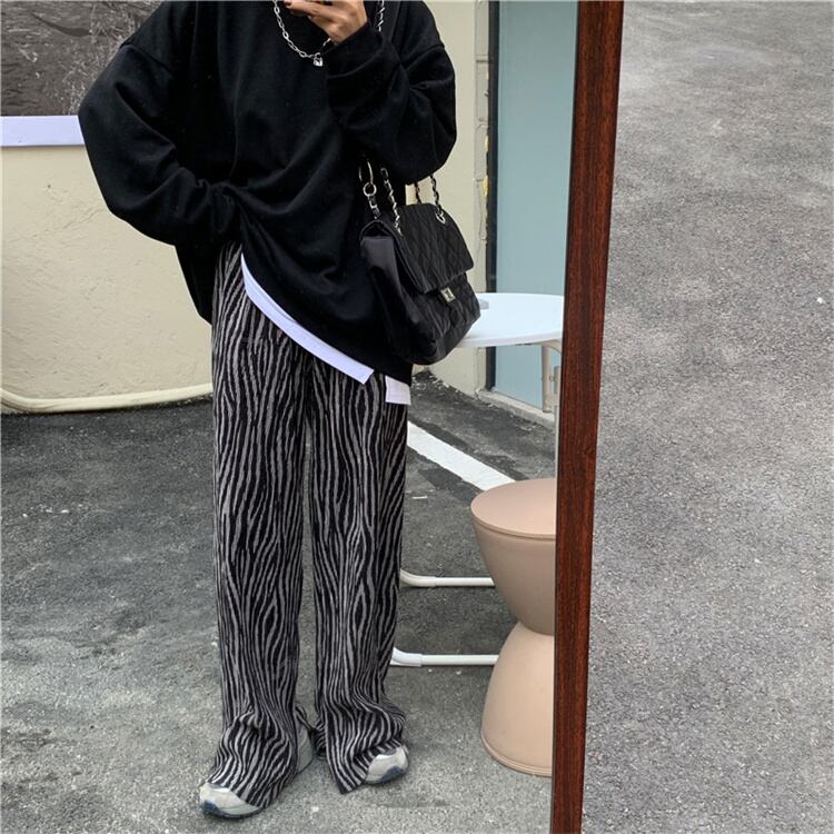 韓国ファッション ドレープ ストレートレッグ スリット ゼブラ柄 ワイドパンツ