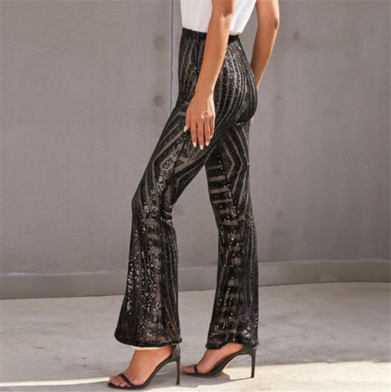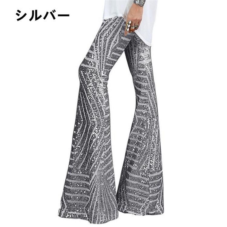 限定販売2021秋冬スリム ワイドパンツ カジュアルパンツ スパンコール ハイウエスト
