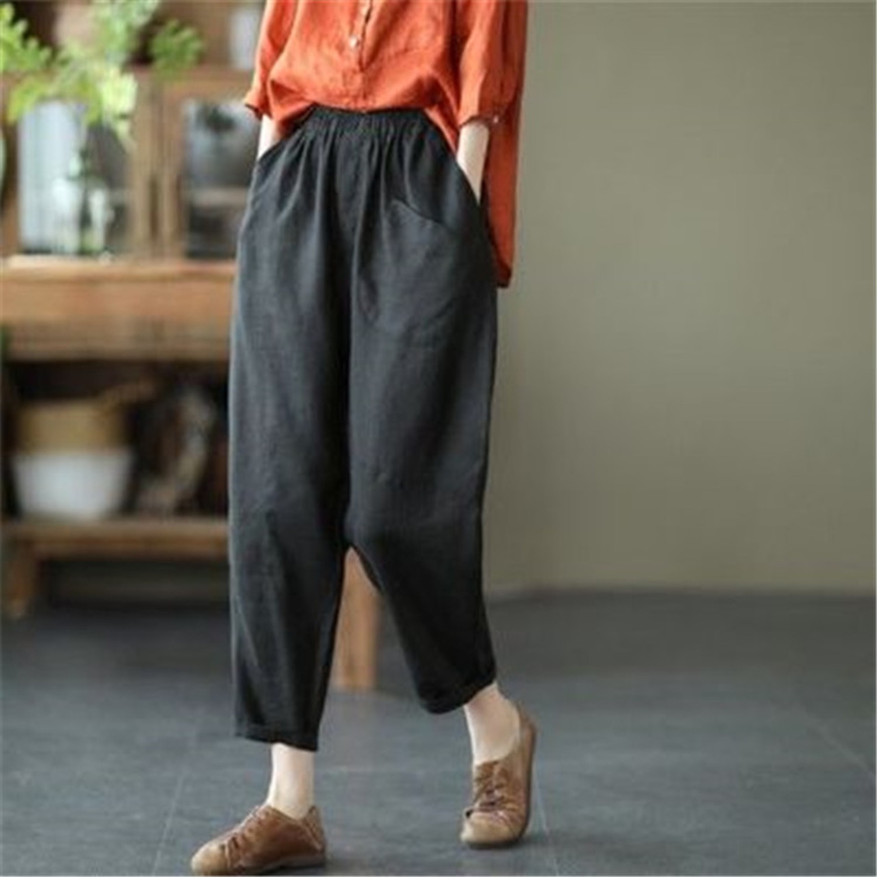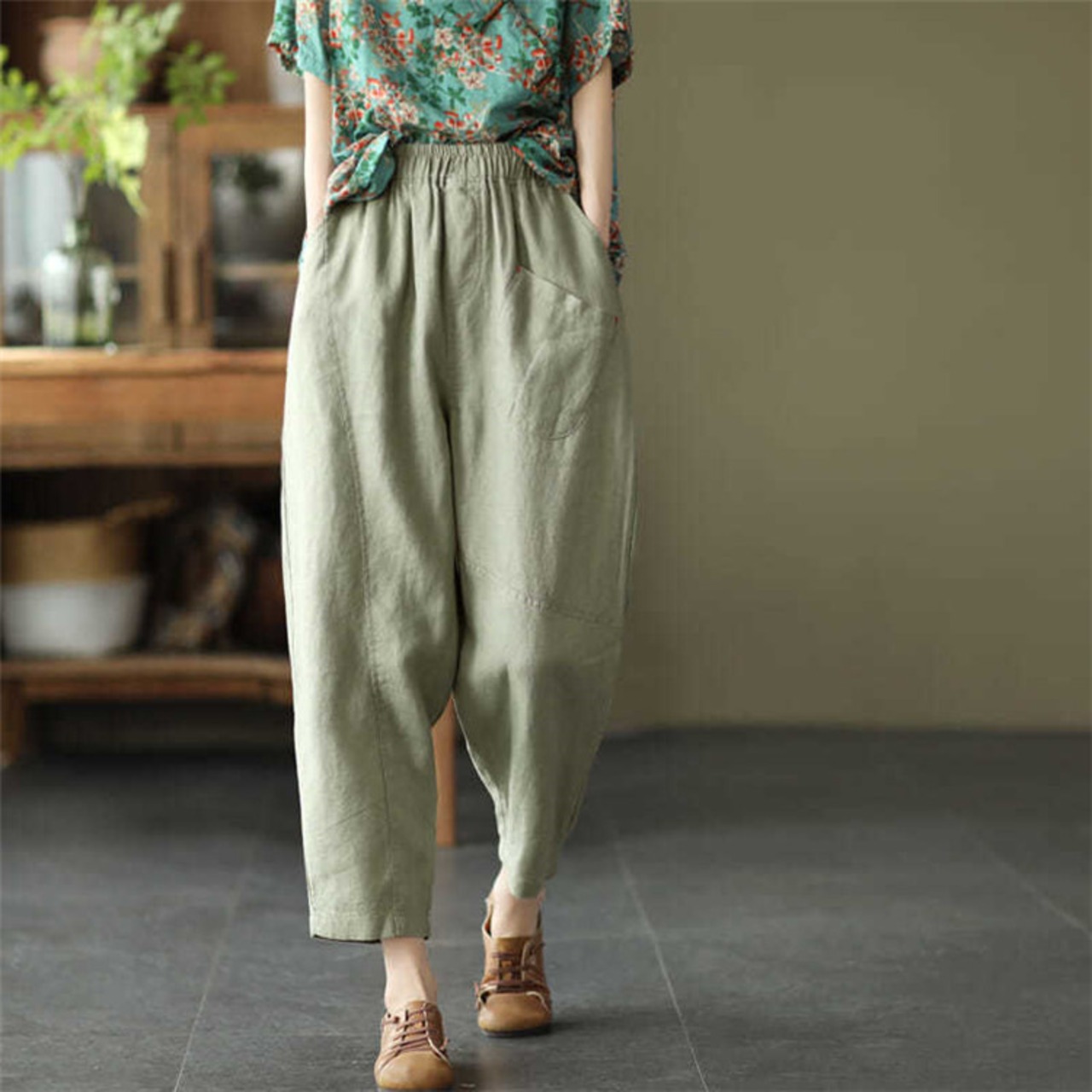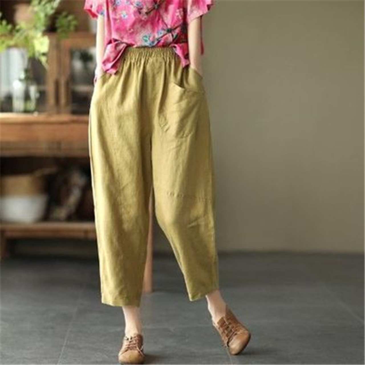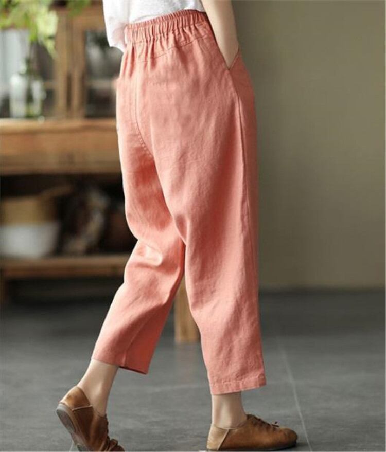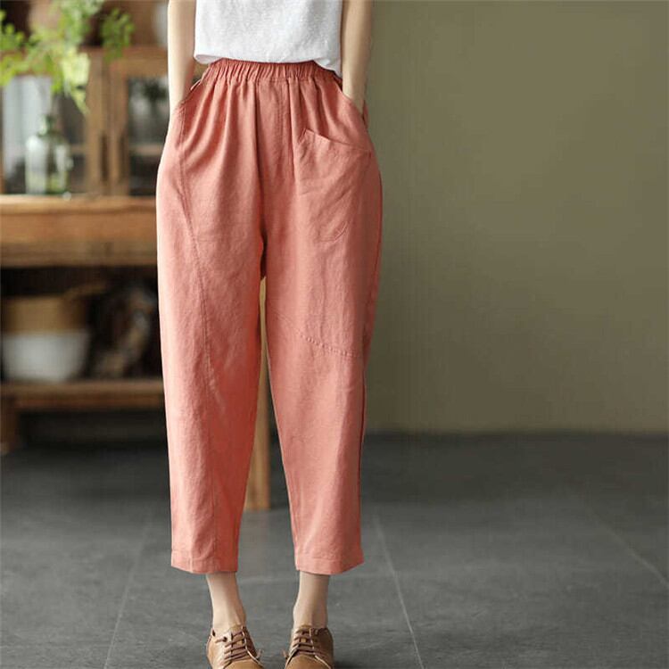 定番 テーパードパンツ カジュアル 九分丈パンツ コットン リネン