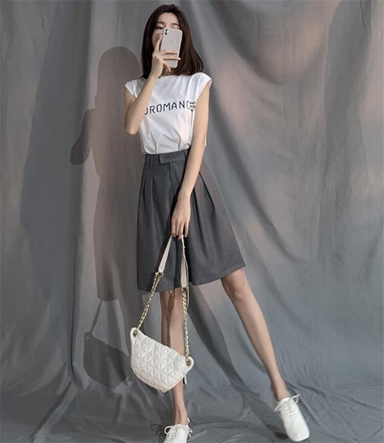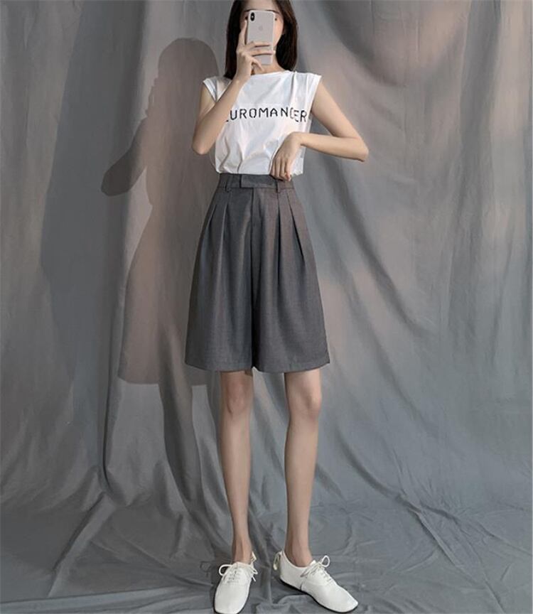 韓国ファッション ゆったりするスリム 百掛け ワイドレッグ ハイウエスト カジュアル スーツショートパンツ