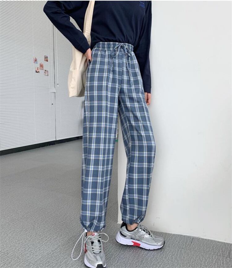 カジュアル テーパードパンツ チェック柄パンツ レディース ゆったりする ストレート