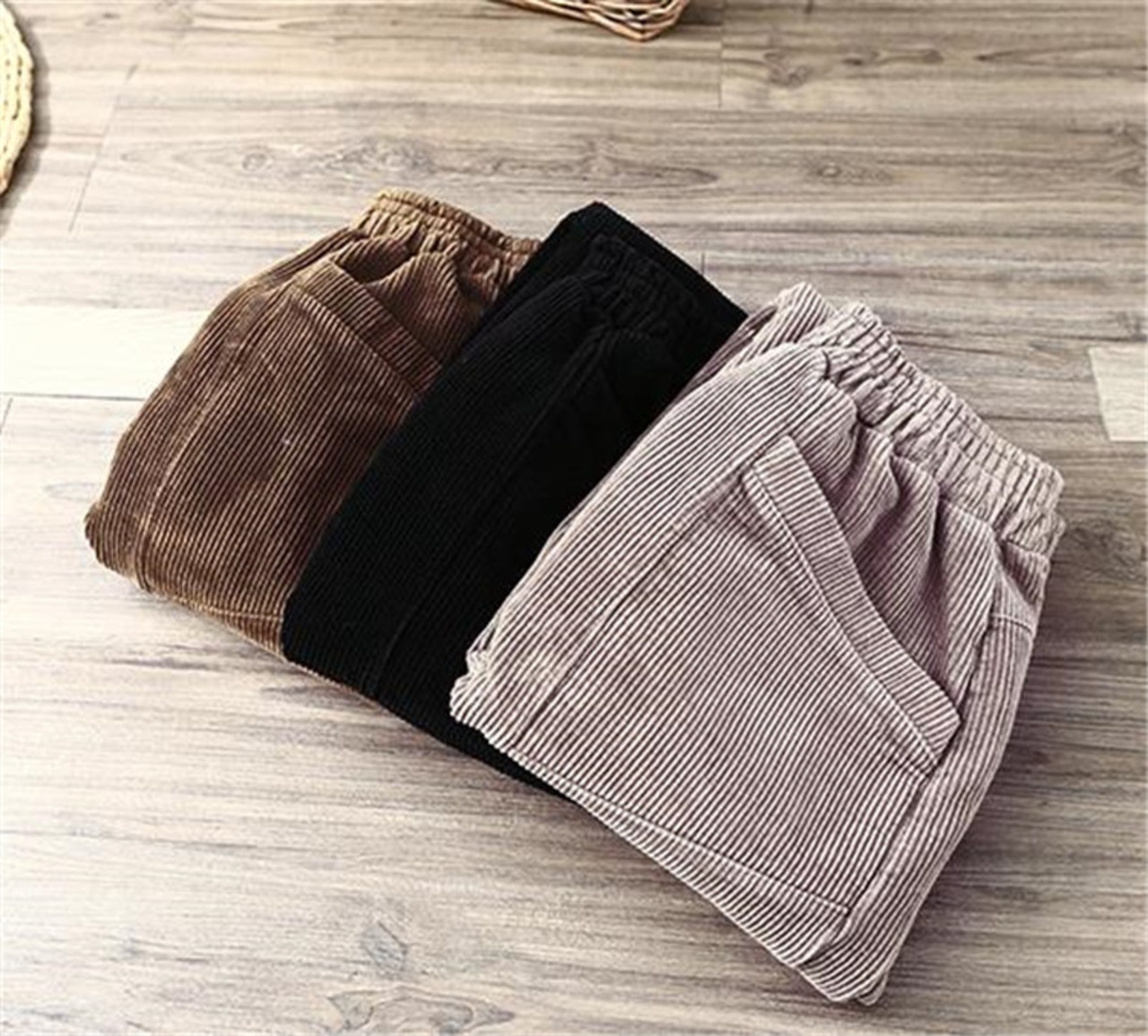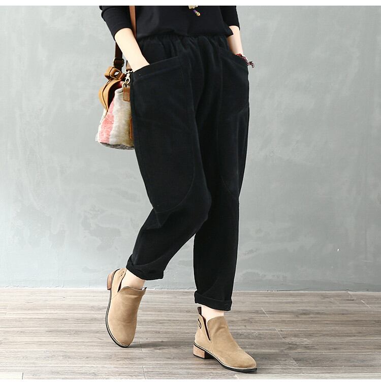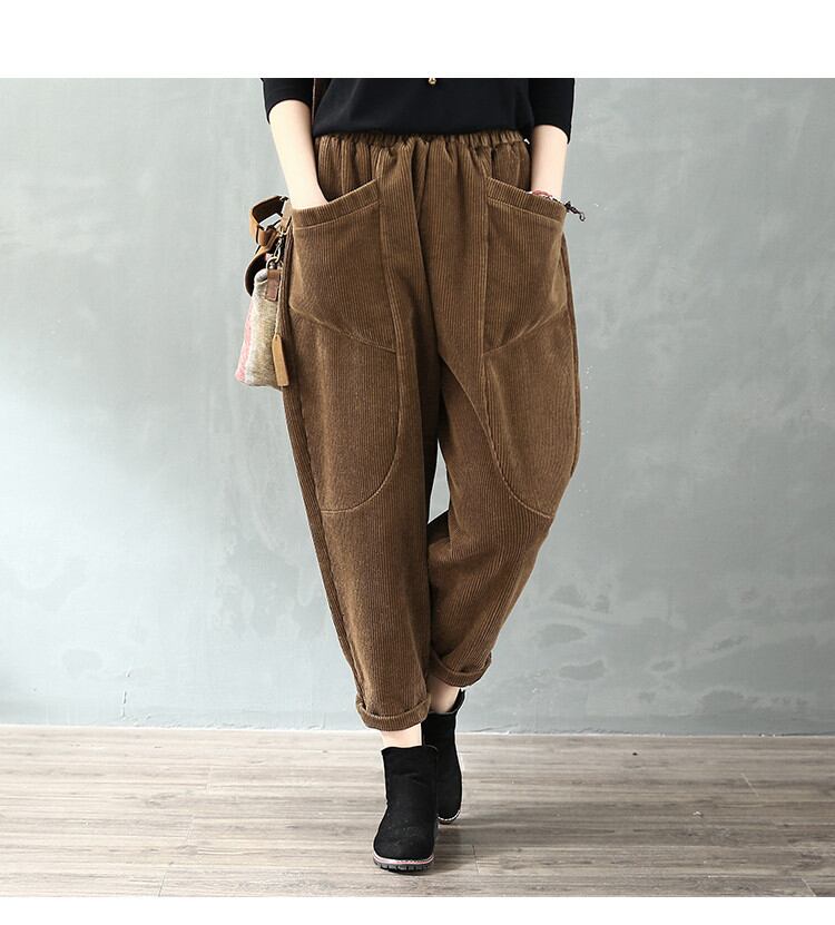 新作 秋 冬 コーデュロイ 厚みをつける 伸縮性のあるウエスト カジュアル ロングパンツ レトロ