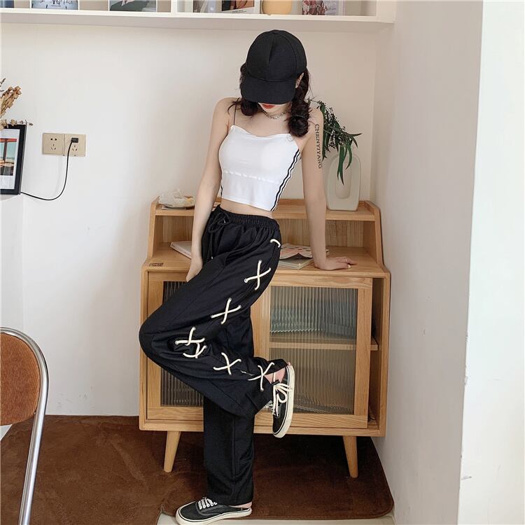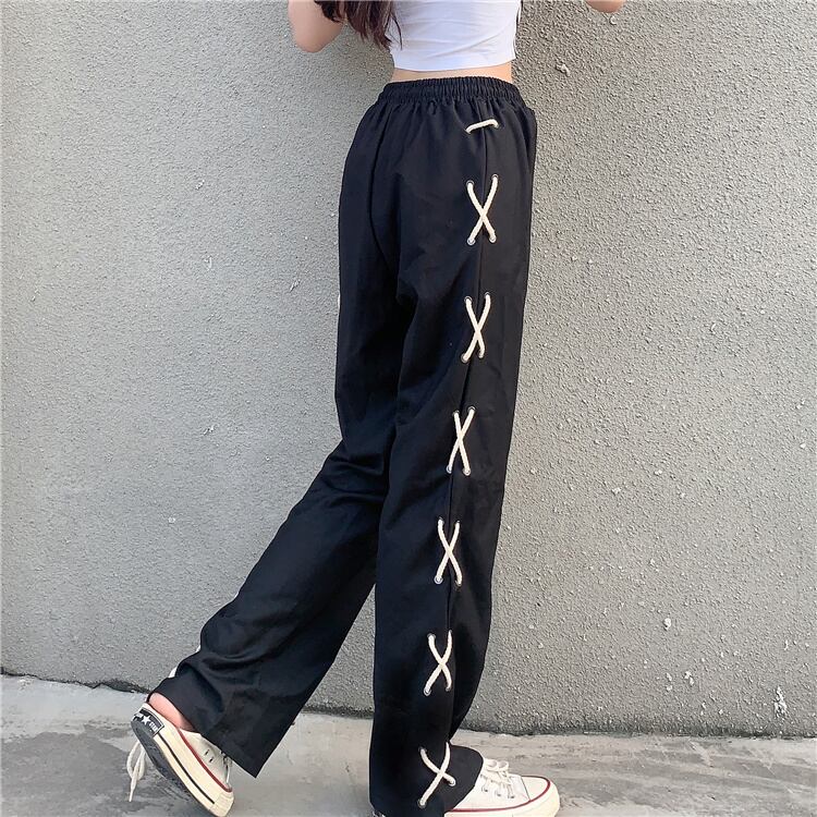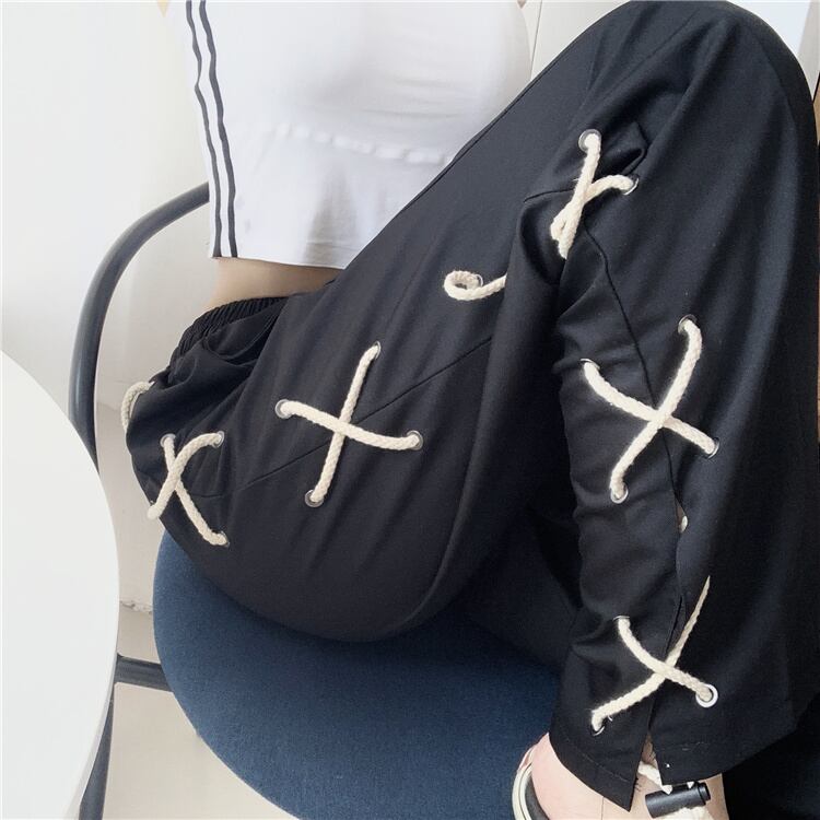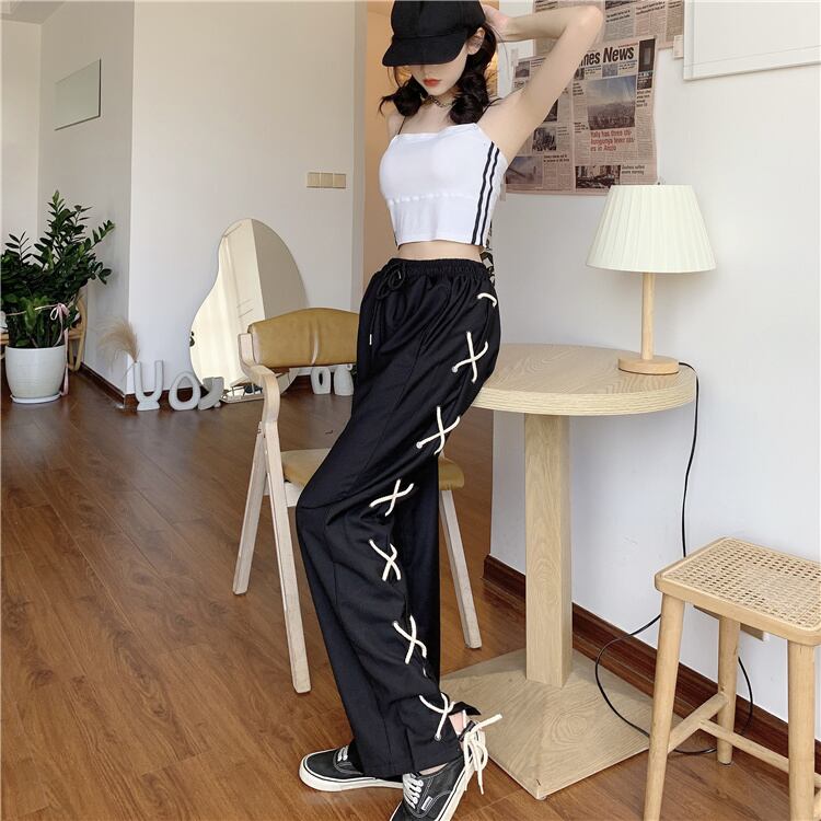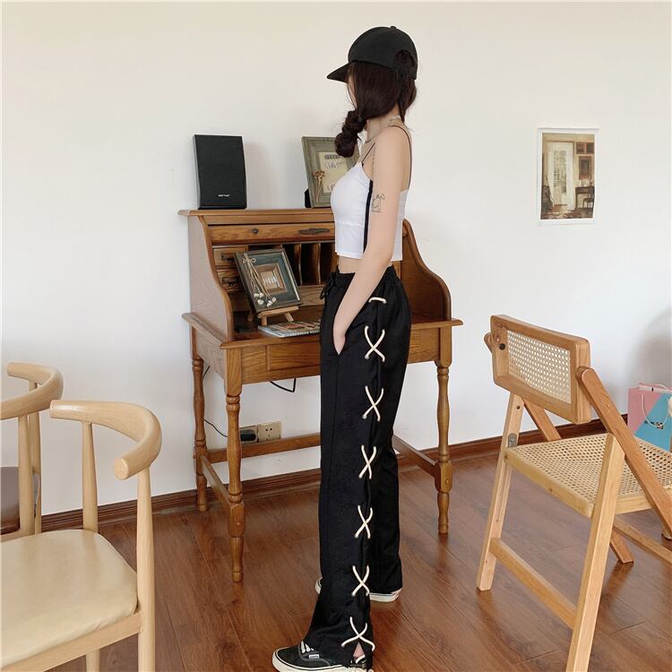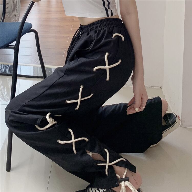 激安セール バンディング スプリット ワイドパンツ デザインセンス ハイウエストカジュアルパンツ