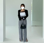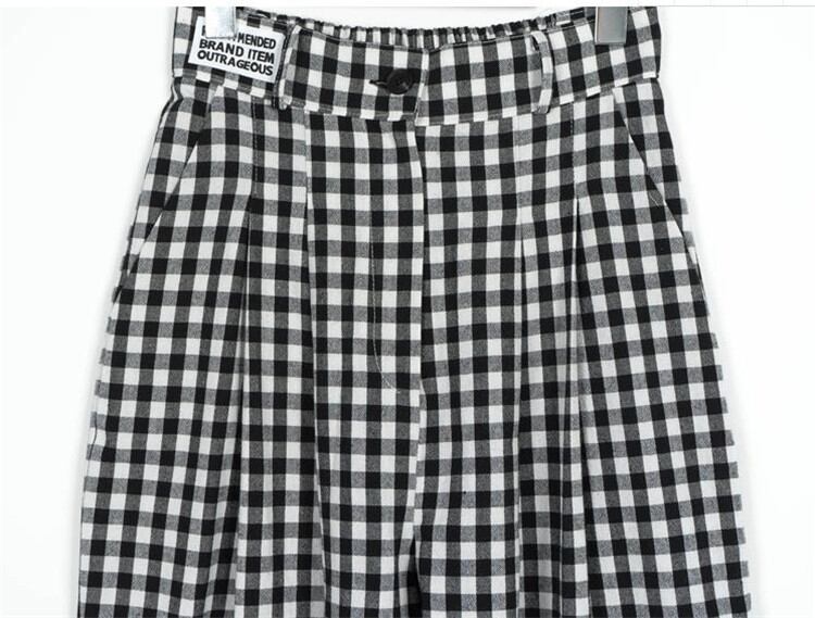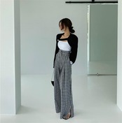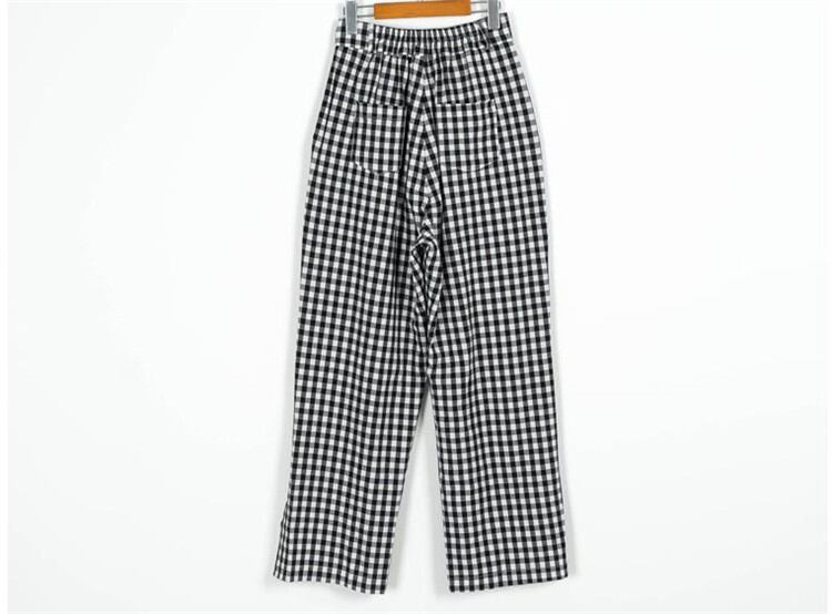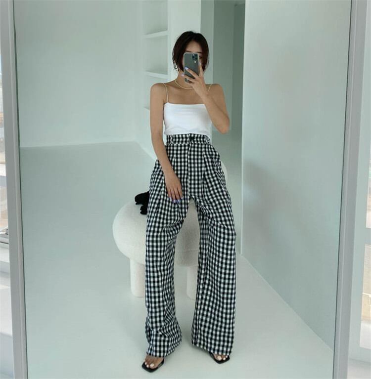 大人気 チェック柄 伸縮性ウエスト ワイドレッグ カジュアルパンツ