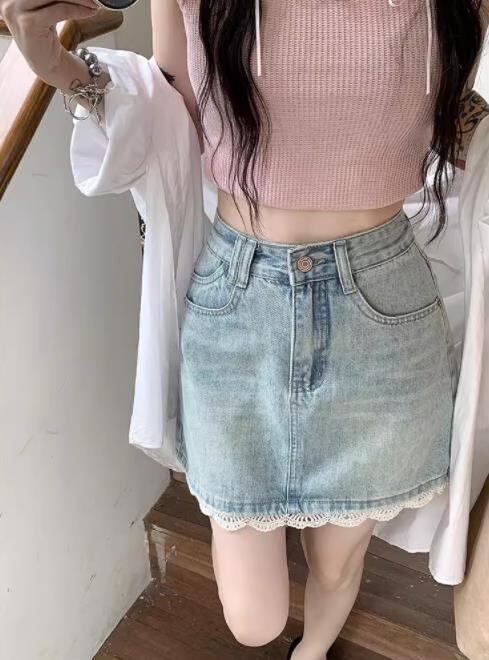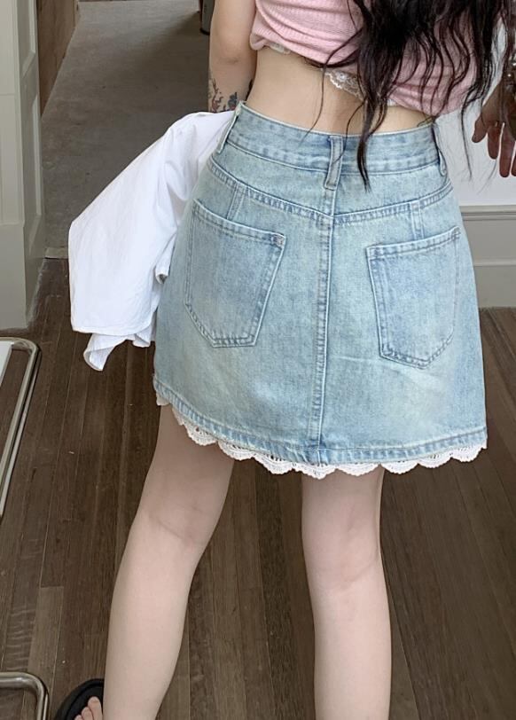 2024春夏新作 ボトムス 女 レディース ハイウエスト デニム ミニスカート 台型スカート
