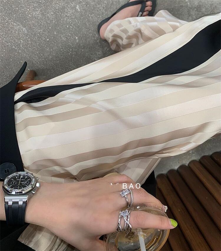 早い者勝ち シン ストライプ カジュアルパンツ アイスシルク シン
