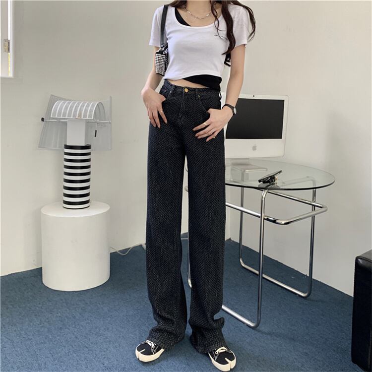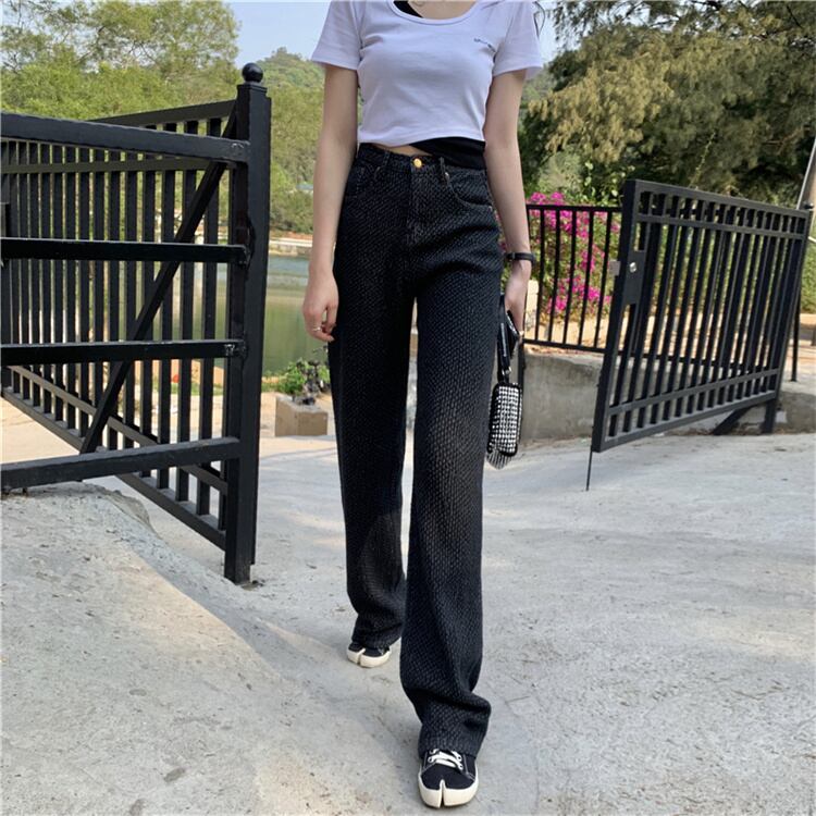 早い者勝ち ハイウエスト ワイドパンツ カジュアル ジーンズ ストレートレッグ