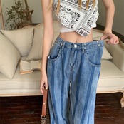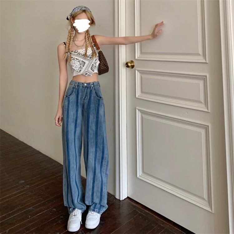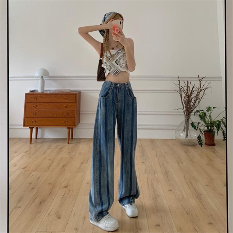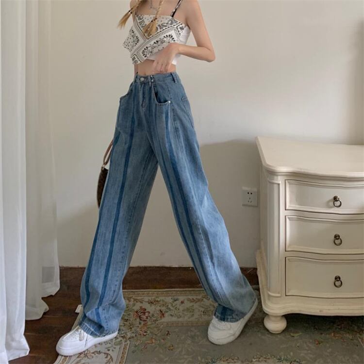 早い者勝ち ロングパンツ ジーンズ ハイウエスト スリム ストレートレッグ