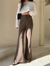 早い者勝ち スプリット マイクロフレア ワイドパンツ スーツパンツ ドレープ