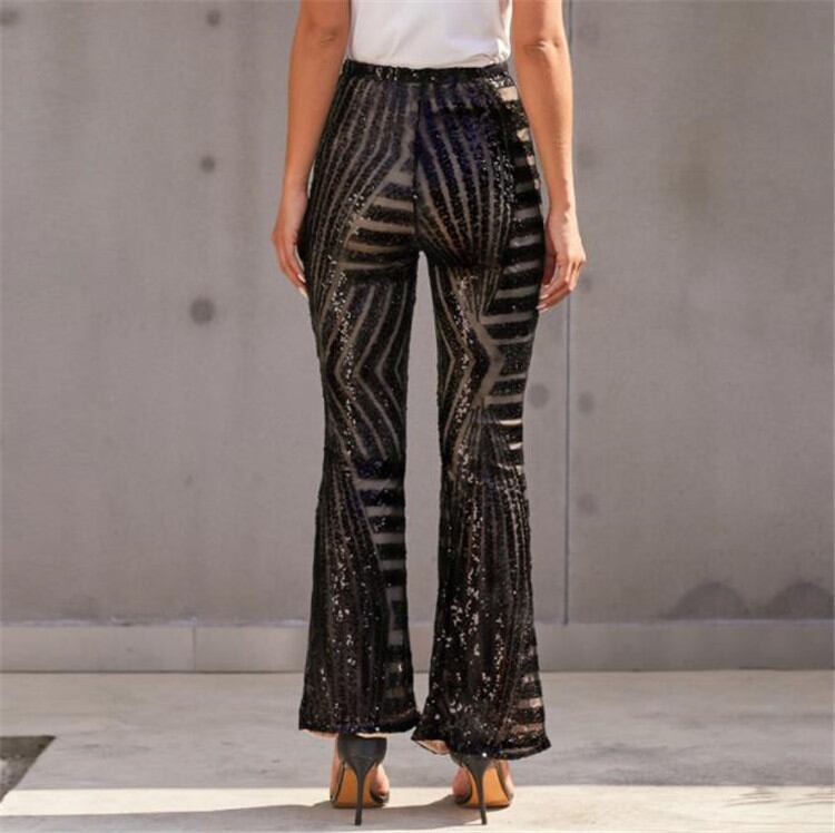 限定販売2021秋冬スリム ワイドパンツ カジュアルパンツ スパンコール ハイウエスト