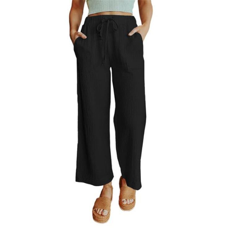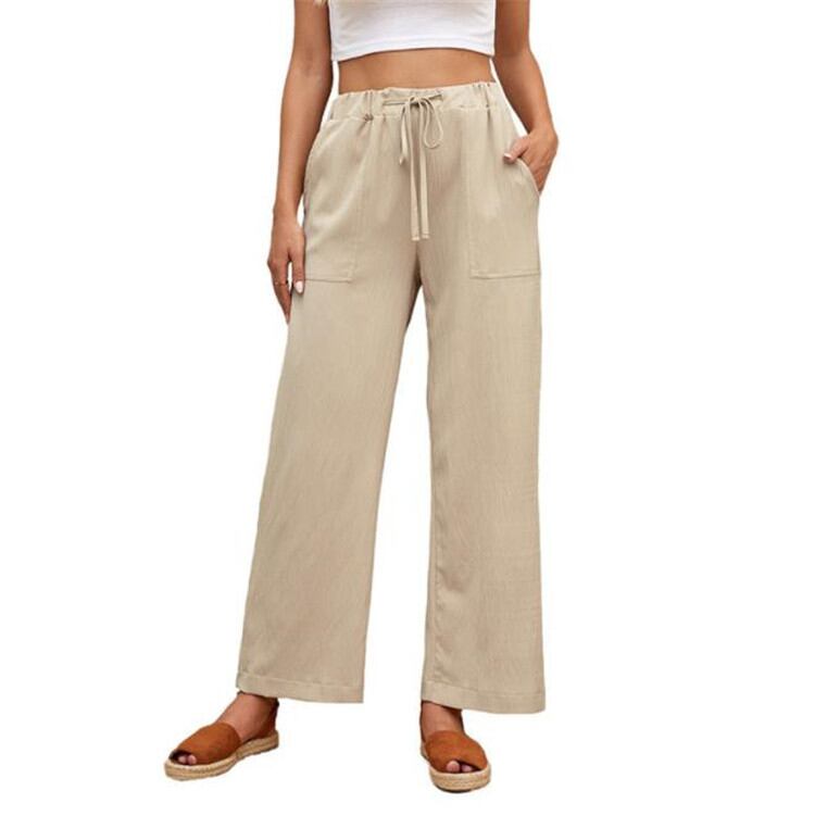 ゆったりする 無地 レディース 2021年新作 ワイドパンツ バンディング ロング パンツ
