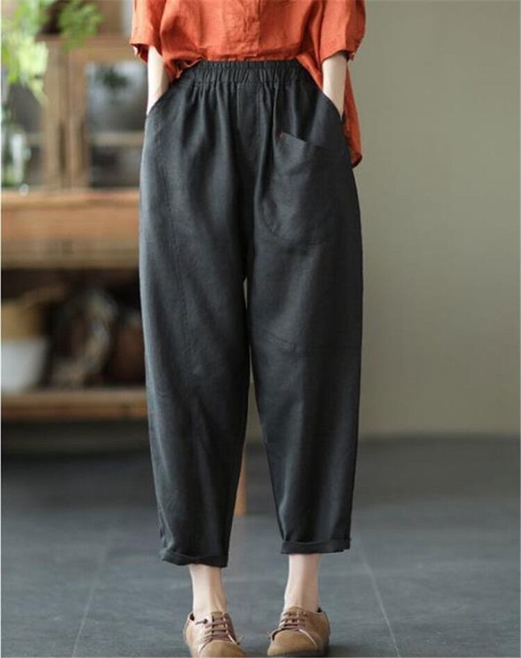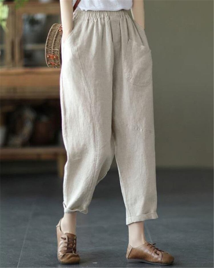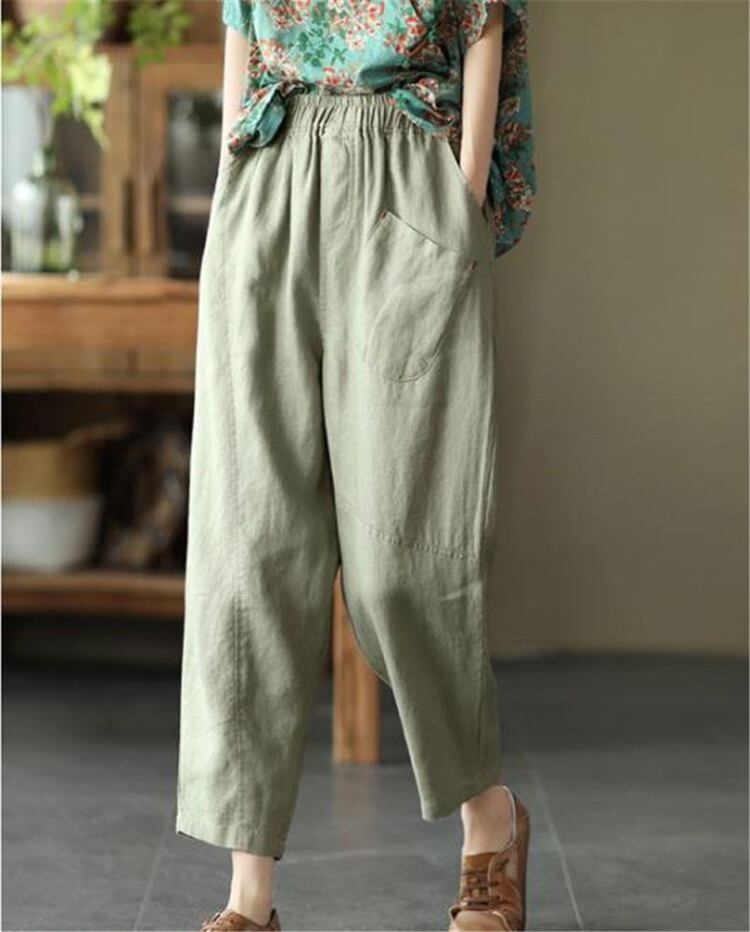 定番 テーパードパンツ カジュアル 九分丈パンツ コットン リネン
