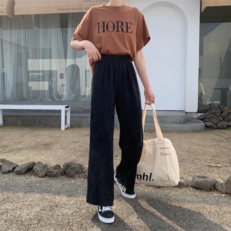 スリム ストレート コーデュロイ ワイドレッグパンツ カジュアル 新作 韓国版 ゆったりする