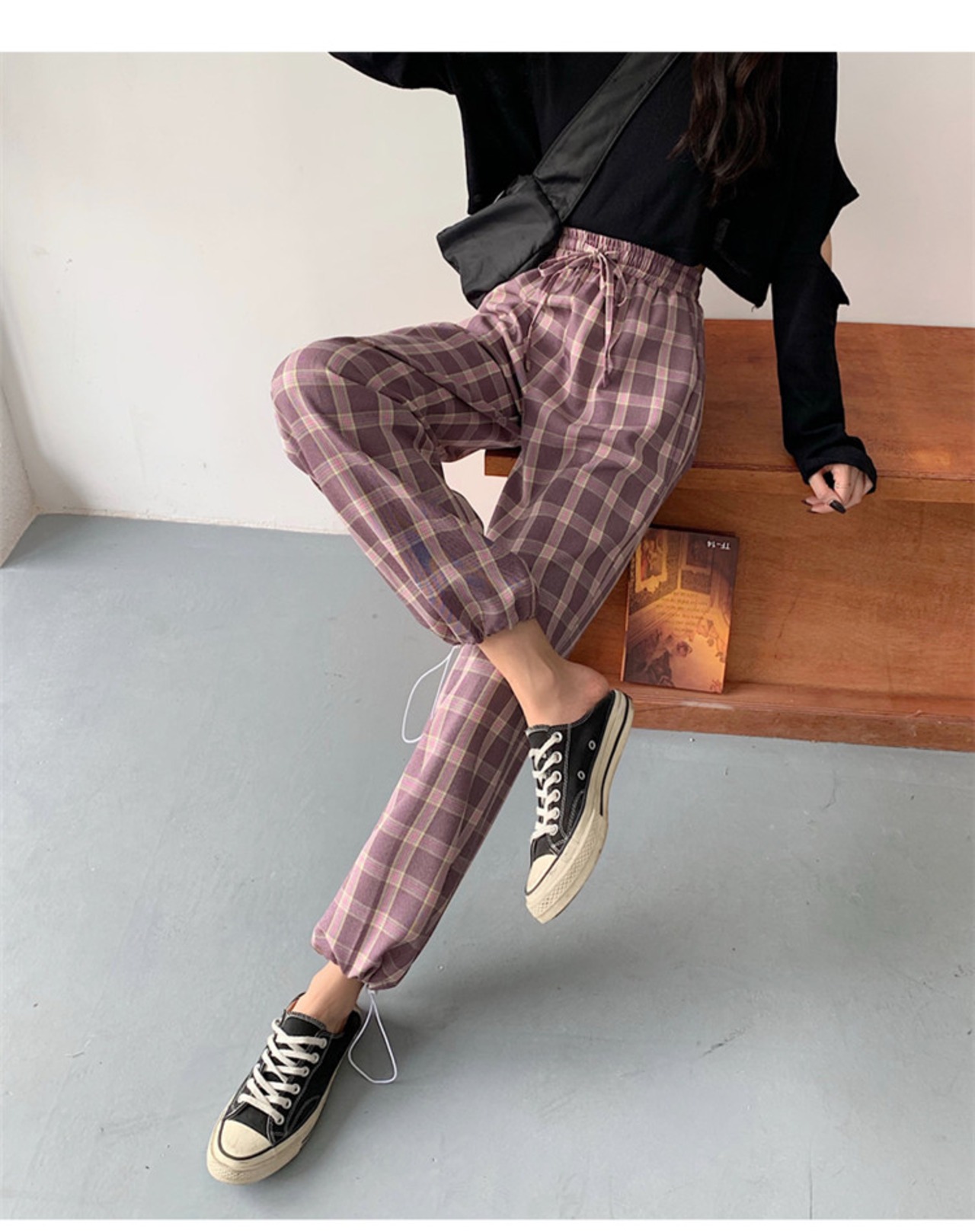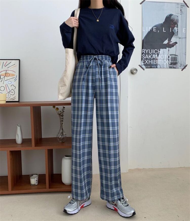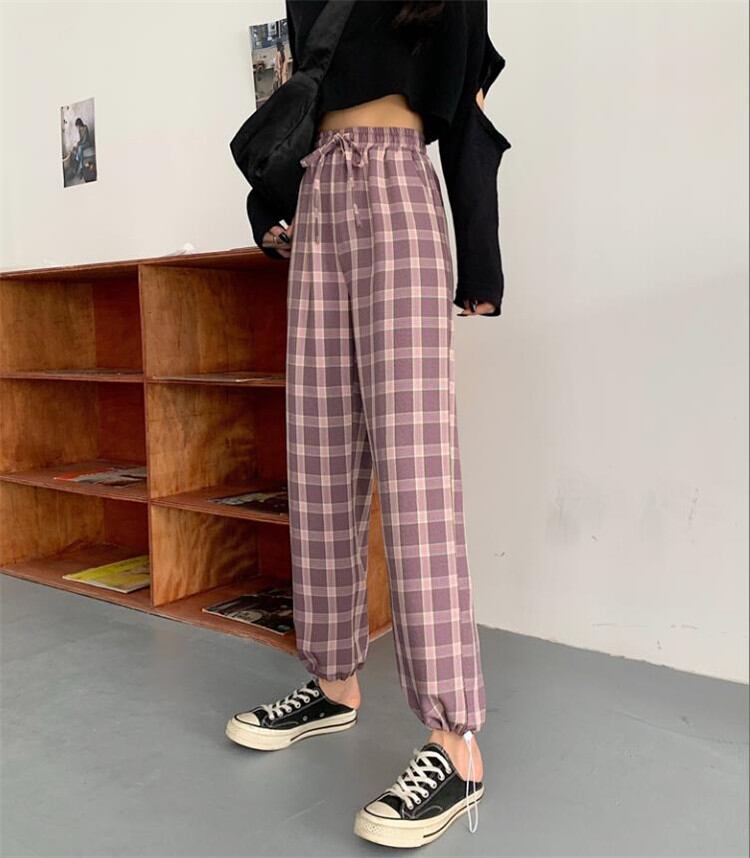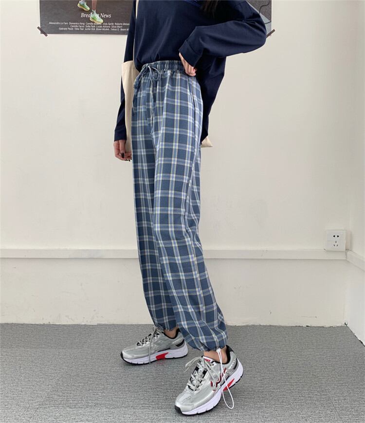 カジュアル テーパードパンツ チェック柄パンツ レディース ゆったりする ストレート
