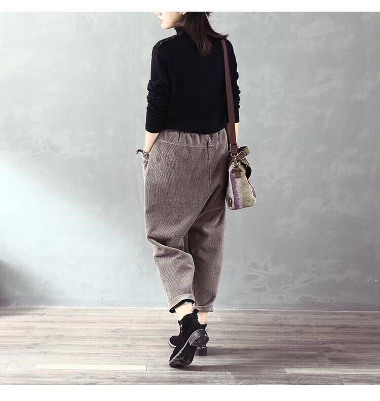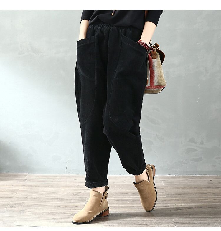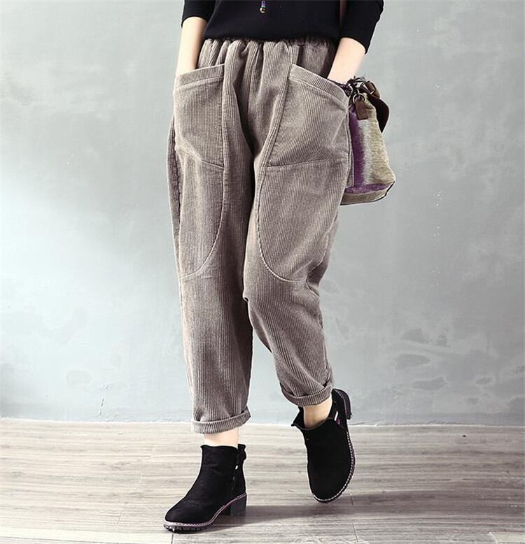 新作 秋 冬 コーデュロイ 厚みをつける 伸縮性のあるウエスト カジュアル ロングパンツ レトロ