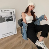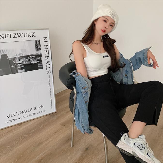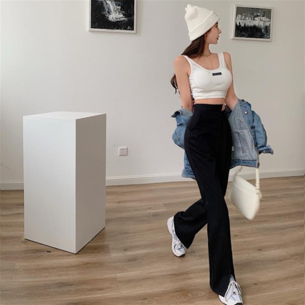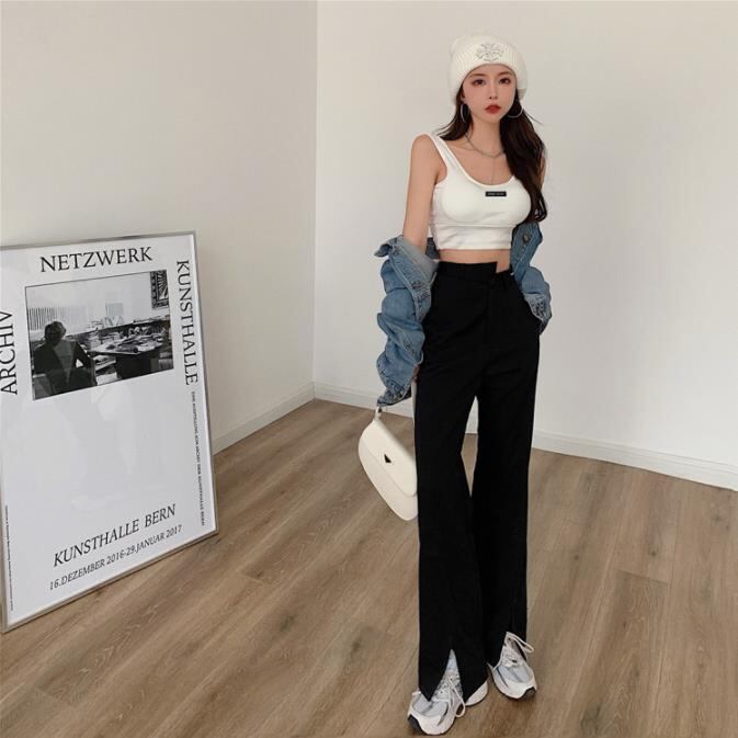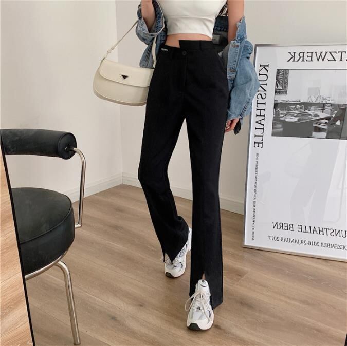 韓国ファッション/スプリット/ハイウエスト/スリム/ウェイラップパンツ