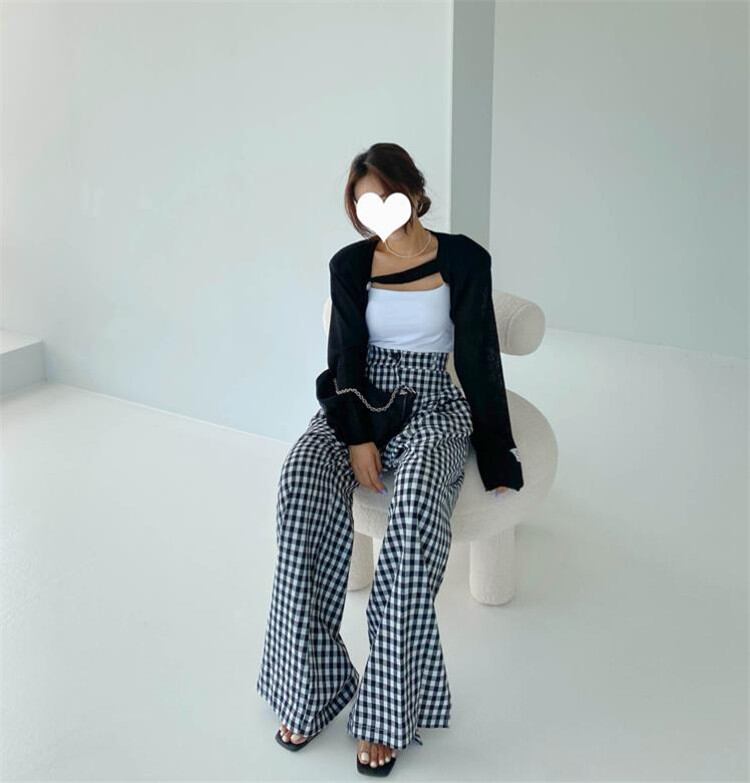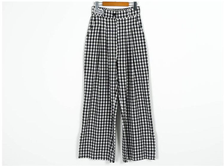 大人気 チェック柄 伸縮性ウエスト ワイドレッグ カジュアルパンツ