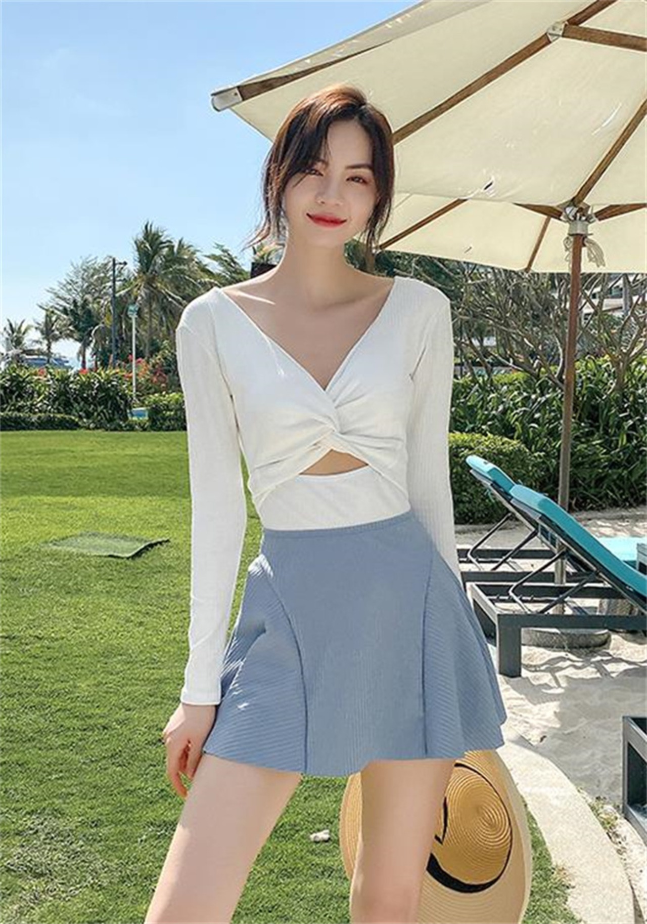 新色が安い 連体水着 長袖 日よけします スリム sweet系 スカート 学生 平角 温泉 水泳着 快適である★★ 水着 レディース おしゃれ ビーチ ビキニ リゾート プール 体型カバー スリム 可愛い インスタ映え セパレート 露出控えめ 盛れるハイウエスト 韓国 日焼け対策 競泳 スイムウェア日焼け防止 スタイルアップ 着痩せ | DOKO-ME