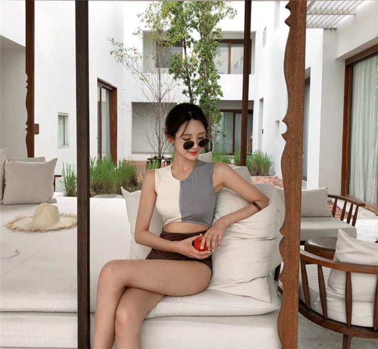 韓国ファッション 小さな香りの風 カラーマッチング ジッパー 透かし彫り ンビネゾン 温泉 水着 女性 簡約★★ 水着 レディース おしゃれ ビーチ ビキニ リゾート プール 体型カバー スリム 可愛い インスタ映え セパレート 露出控えめ 盛れるハイウエスト 韓国 日焼け対策 競泳 スイムウェア日焼け防止 スタイルアップ 着痩せ | DOKO-ME