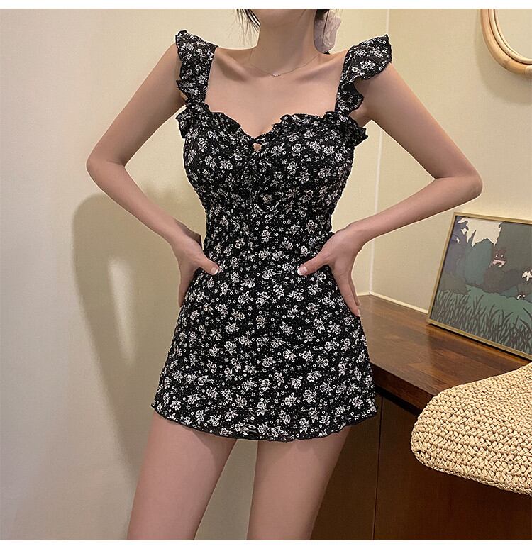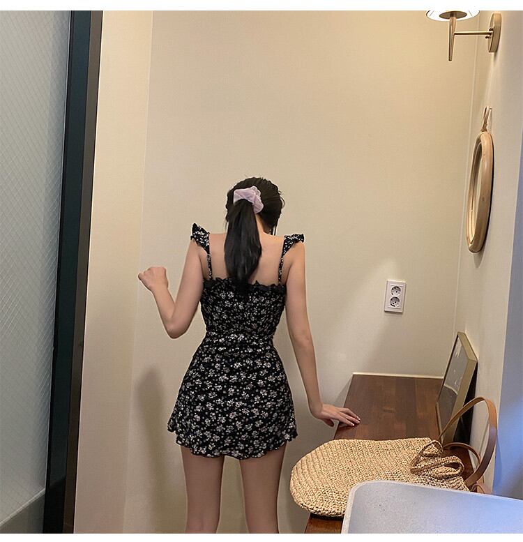 INSスタイル 温泉 ビーチ セクシー 背透けて カバー腹 スリム 花柄 ワンピース水着 小さな胸を集めた 学生