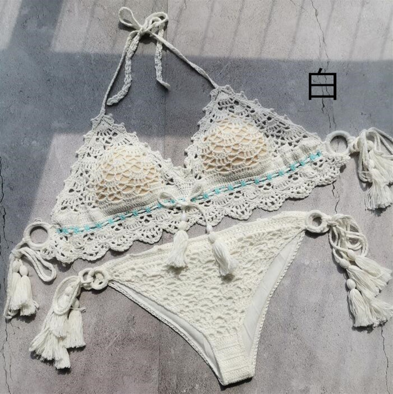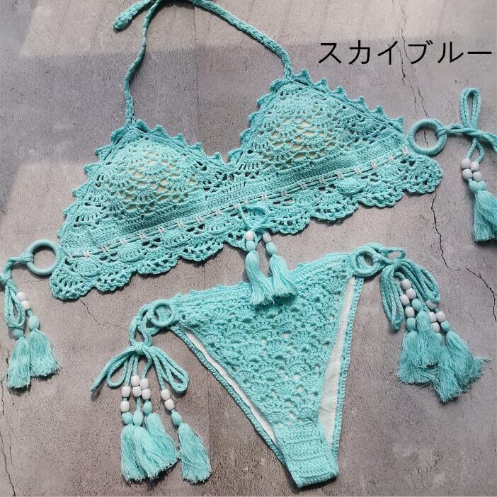 ニット水着 ワイヤー無し ホルターネックビキニ タッセル★★ 水着 レディース おしゃれ ビーチ ビキニ リゾート プール 体型カバー スリム 可愛い インスタ映え セパレート 露出控えめ 盛れるハイウエスト 韓国 日焼け対策 競泳 スイムウェア日焼け防止 スタイルアップ 着痩せ | DOKO-ME