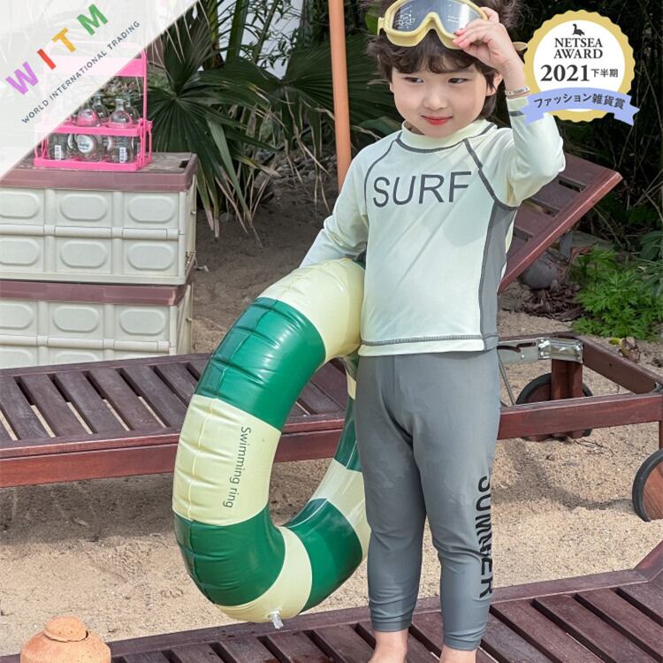 シンプルなデザインで子供スポーティスタイルにUV対策も欠かさない水着です。