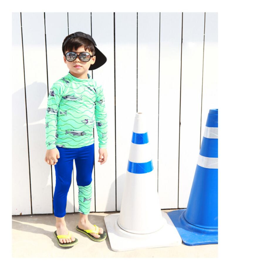 シンプルなデザインで子供スポーティスタイルにUV対策も欠かさない水着です。