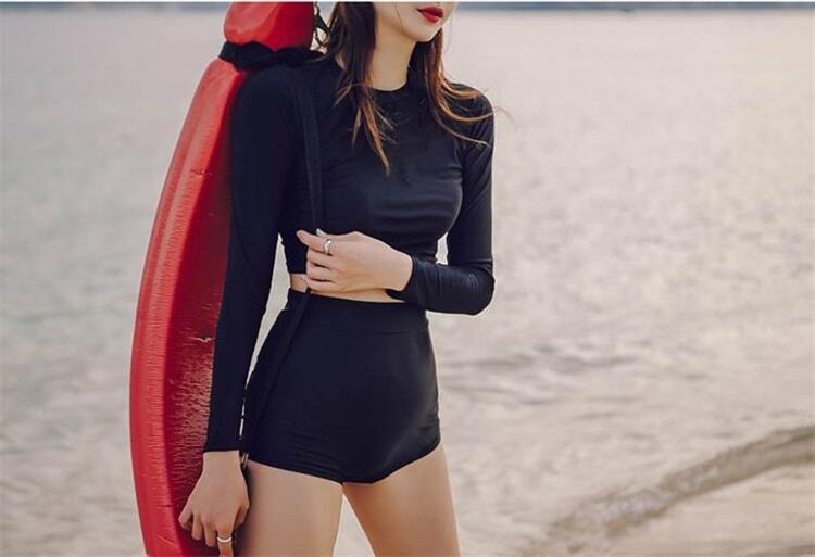 海辺でサーフィン 水着 バストパッド付き 長袖 半袖 保守 2点セット カジュアル