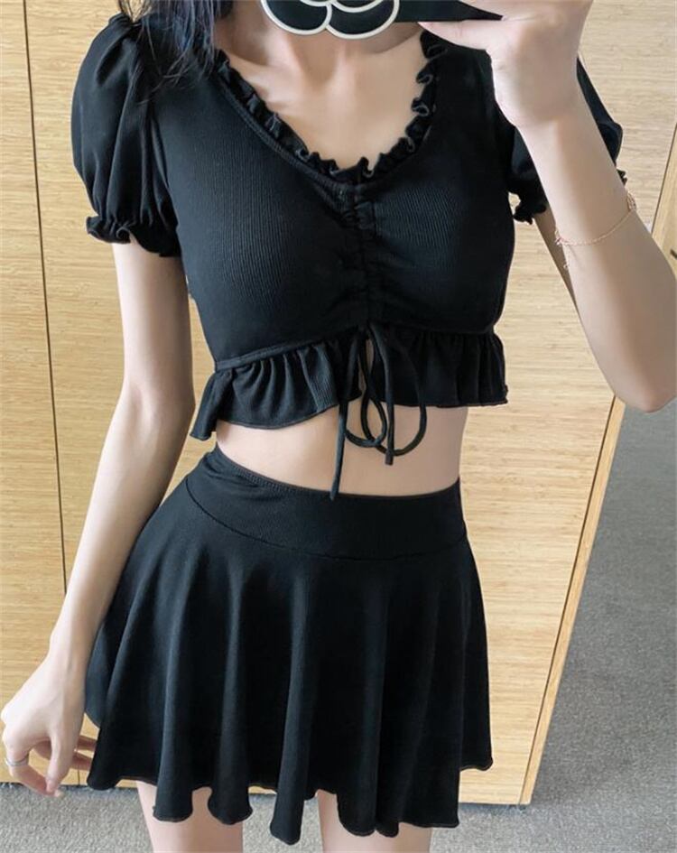平角 2点セット 保守 スリム 学生 温泉 水着 カジュアル 小さい新鮮な ジェントルスタイル★★ 水着 レディース おしゃれ ビーチ ビキニ リゾート プール 体型カバー スリム 可愛い インスタ映え セパレート 露出控えめ 盛れるハイウエスト 韓国 日焼け対策 競泳 スイムウェア日焼け防止 スタイルアップ 着痩せ | DOKO-ME
