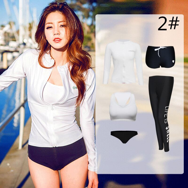 水着 長袖ラッシュガード フィットネス水着 5点上下セット セパレート UVカット レディース★★ 水着 レディース おしゃれ ビーチ ビキニ リゾート プール 体型カバー スリム 可愛い インスタ映え セパレート 露出控えめ 盛れるハイウエスト 韓国 日焼け対策 競泳 スイムウェア日焼け防止 スタイルアップ 着痩せ | DOKO-ME